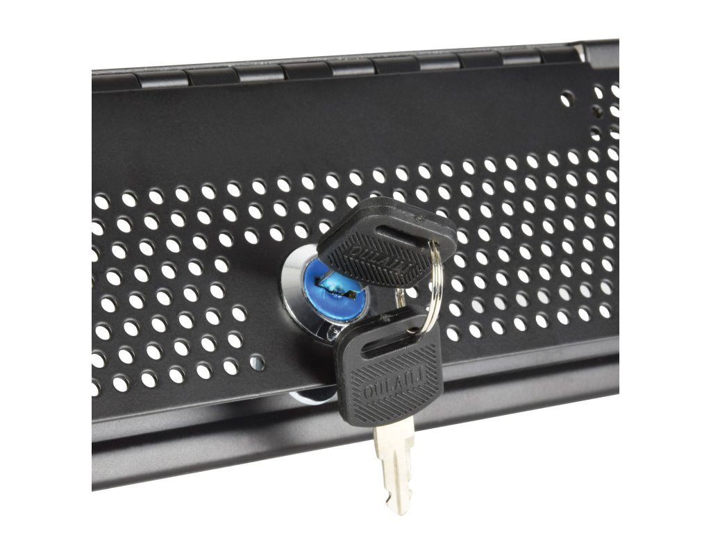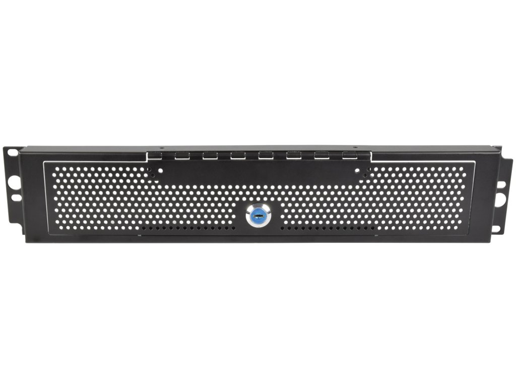 Bezpečnostní panel se zámkem pro ochranu zařízení umístěných v racku. Uzamykatelná dvířka se sadou klíčů, výška 2HE.Výška: 2U