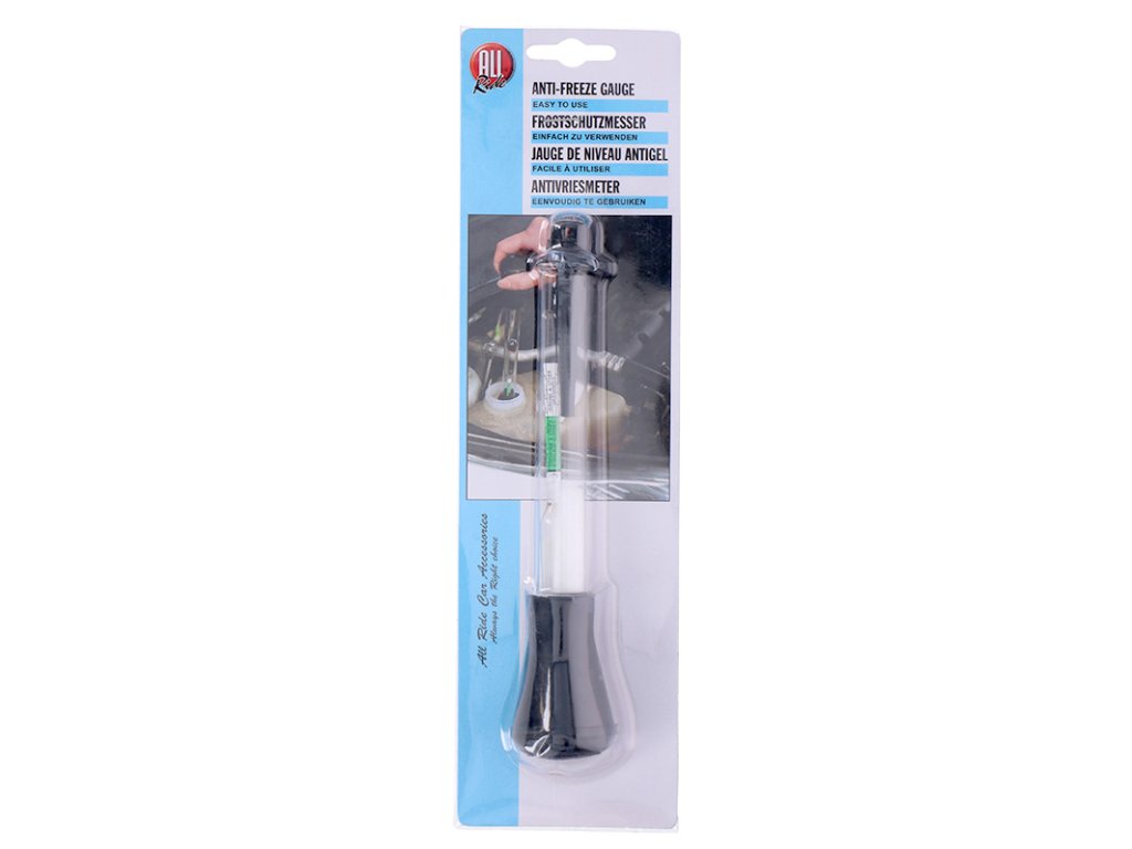 Skleněný měřič chladicí kapaliny s balónkem a vnitřním plovákem. Měření stavu kapaliny se provádí nasátím kapaliny pomocí balónku do skleněné trubice. Měřič obsahuje dvě stupnice - pro chladicí kapaliny na bázi ethylenglykolu nebo metanolu.