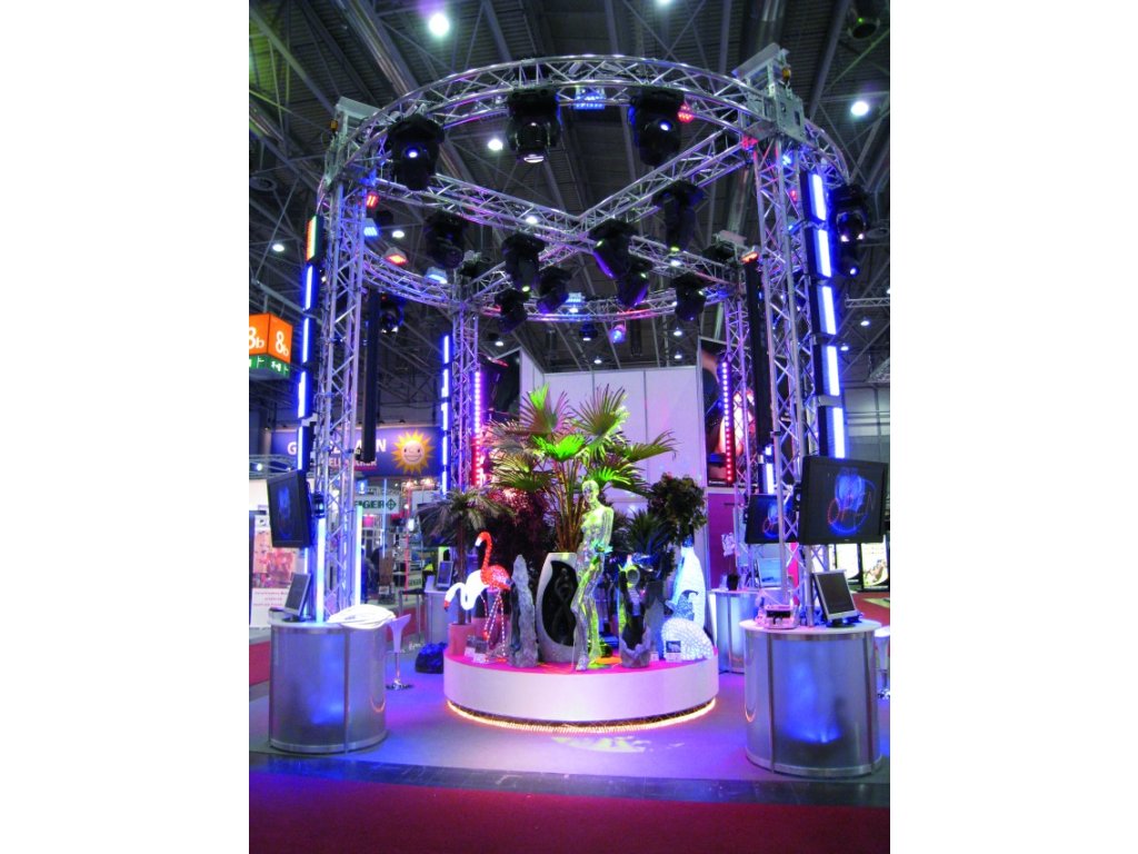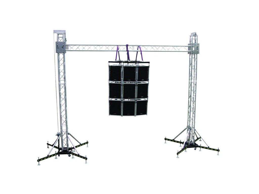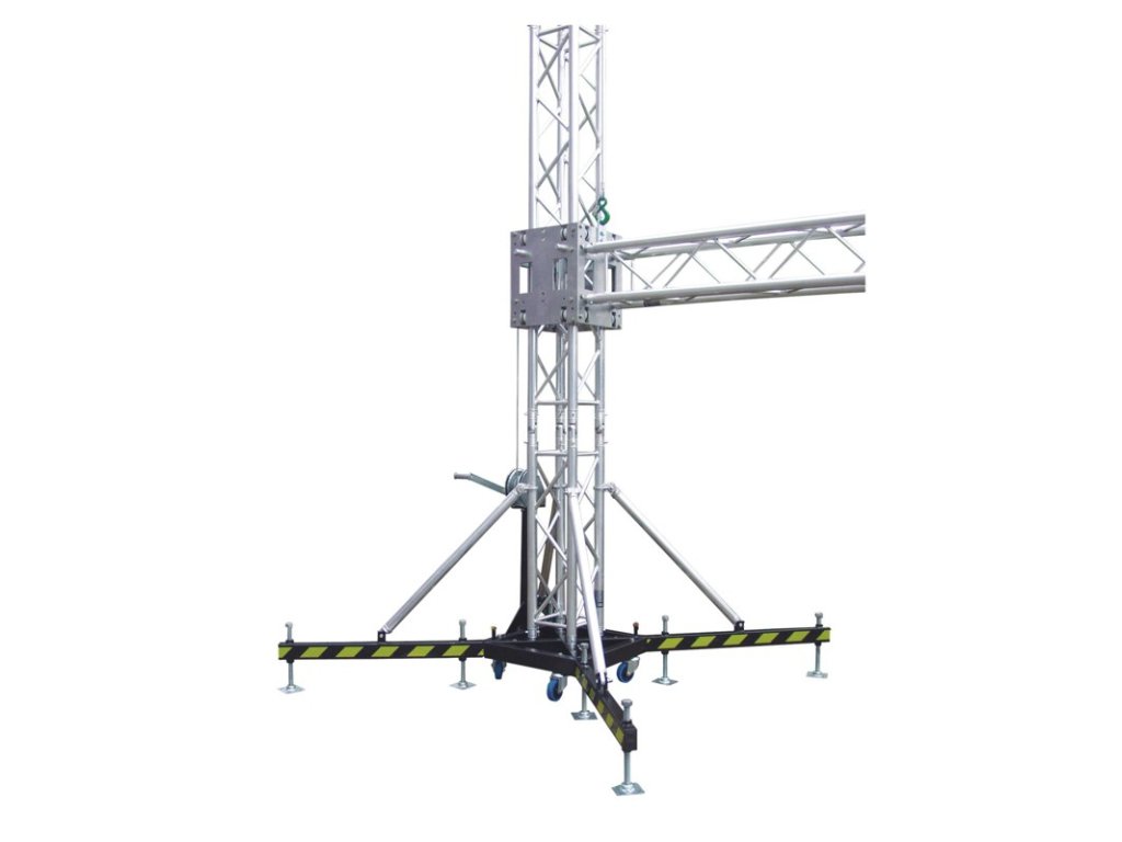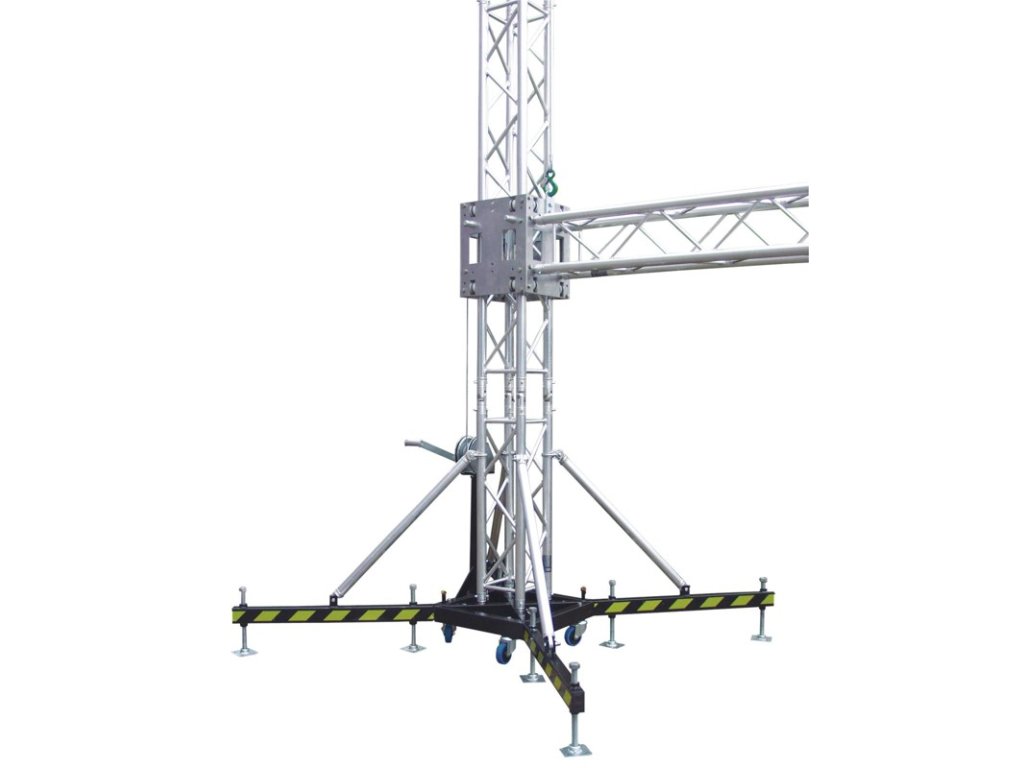 Profesionální řešení stavby koncertních stanů (stage), pódiových konstrukcí či multifunkčních stánků. Tower systém umožňuje bezpečné a pohodlné zavěšení techniky (světelné nebo zvukové) na konstrukci a její následné vytažení do potřebné výšky. Základna Tower systému II je vybavena teleskopickými nohami, které se dají přizpůsobit terénním nerovnostem. Maximální stabilitu pak zajišťují 4 vzpěry, které jsou součástí dlouhých základnových nohou. Pohyb zavěšené techniky na konstrukci zajišťuje díl zvaný „sleeve blok“, který je tažen lanem (není součástí) přes kladku ve vrcholu konstrukce. Samotný pohyb pak zajišťuje buď klikový naviják (není součástí), nebo řetězový motor (není součástí). Na pojezdovou část „sleeve blok“ se dá připojit konstrukce typu TRIO nebo QUADRO M290. Pro sestavení celého stanu je zapotřebí 4 Tower věží, na sestavení brány jsou potřeba jen 2 Tower věže.Maximální výška budov: 7 m