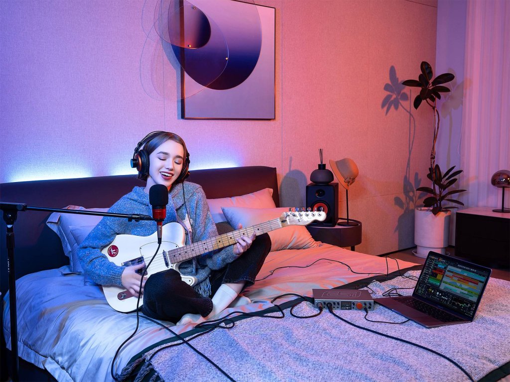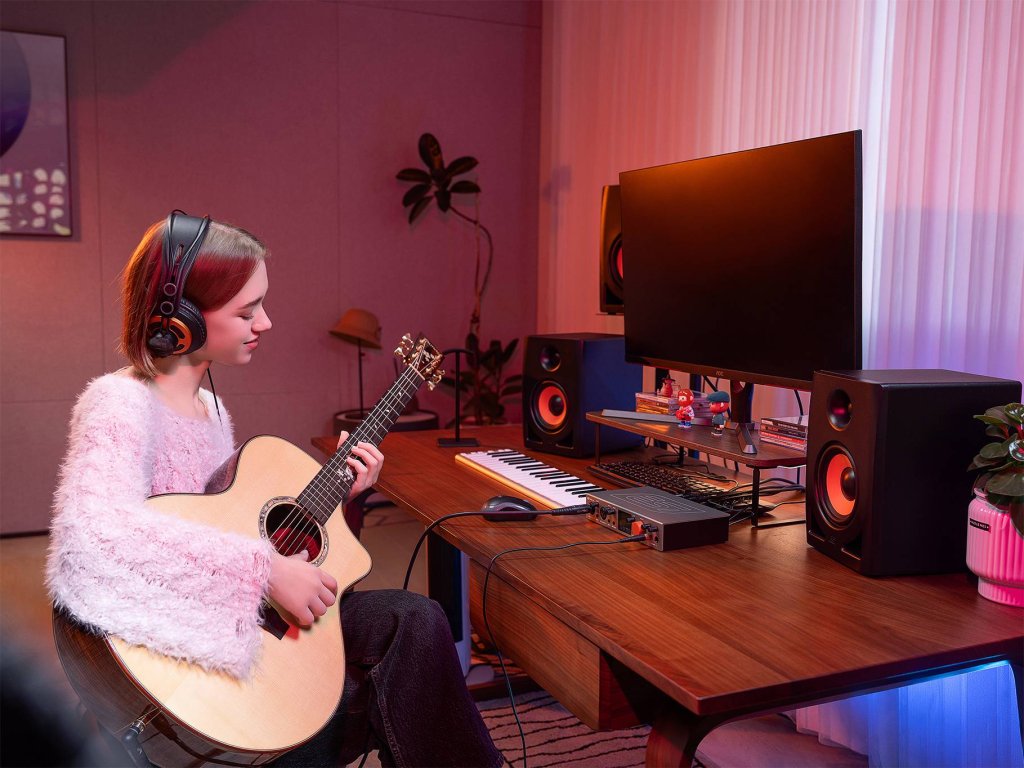 je USB-C zvuková karta pro všechny uživatele – od hudebníků přes domácí studia až po streamování a YouTubery, či gamery. A to vše s profesionálními parametry. Celkem má 4 analogové vstupy, z toho 2 univerzální mic/line/instr na konektorech combo XLR/TRS 6,3 s možností napájení +48 V a regulací Gainu a na zadním panelu 2 linkové na konektorech TRS 6,3. 4 analogové výstupy s možností regulace nabízejí připojení dvou párů aktivních monitorů, nebo začlenění analogových procesorů do digitálního řetězce. 2x MIDI umožňuje začlenění syntezátorů a přístrojů s rozhraním MIDI na konektorech DIN. Loopback s virtuálními kanály a libovolným směrováním nabízí obrovské možnosti pro streamování. Přehledný barevný LCD displej umožňuje sledovat úrovně vstupů a výstupů a zobrazovat právě nastavované parametry. Externí napájení nabízí dynamický zvuk, plný výkon sluchátkových výstupů a bezproblémové napájení obou mic vstupů phantom +48 V pro kondenzátorové mikrofony. Konektor Security Lock umožňuje připojit jednotku k zařízení na ochranu proti krádeži.