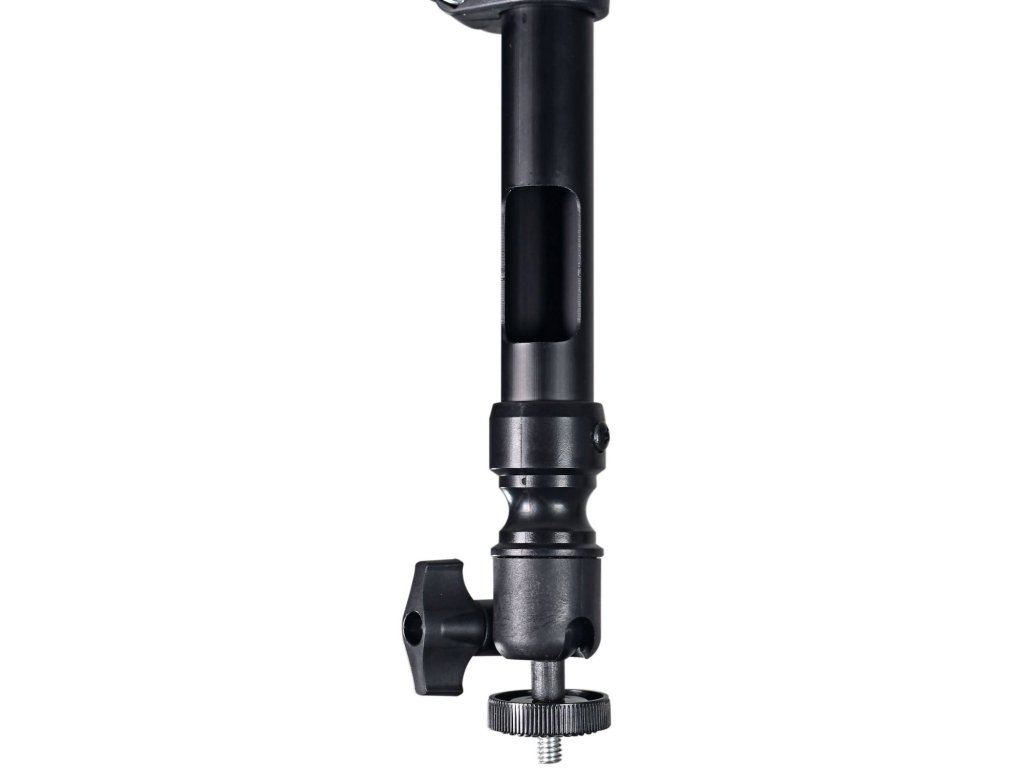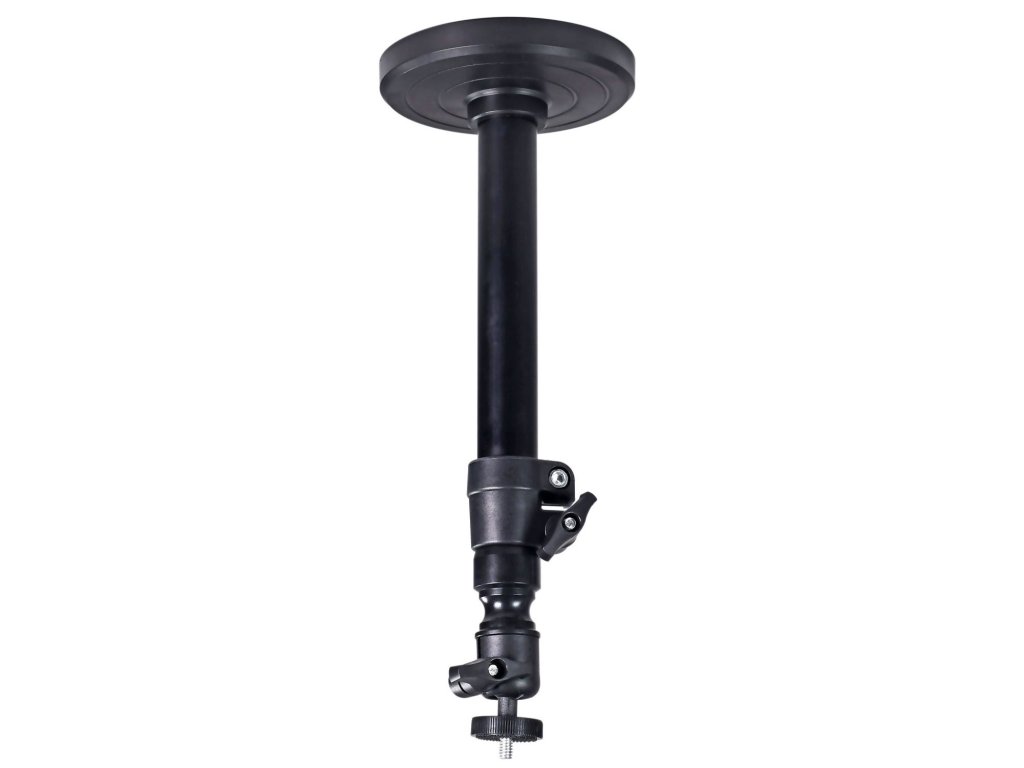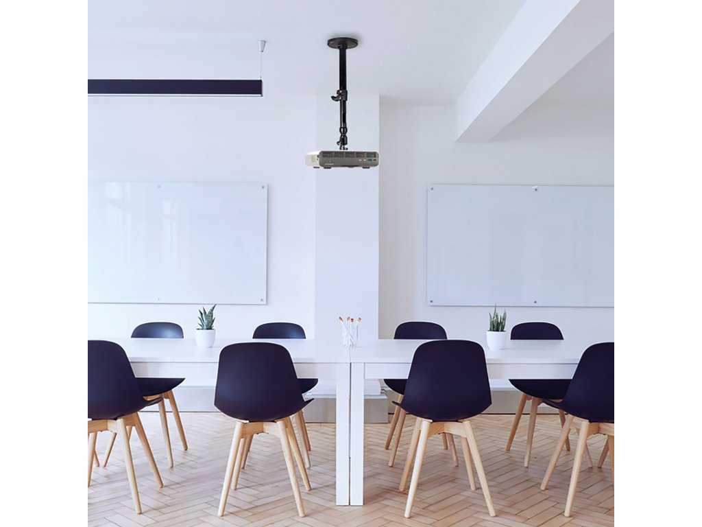Kompaktní a lehký držák, který lze použít na strop nebo stěnu pro nejnovější mikroprojektory, digitální fotoaparáty a videokamery. Teleskopická montážní tyč umožňuje nastavení sklonu od 350 do 500 mm a dodatečné upevnění kulovým kloubem umožňuje nastavení náklonu pro boční nebo šikmé aplikace dle potřeby. Držák je v atraktivní saténově černé barvě a je dodáván s upevňovacími hmoždinkami a šrouby a je ideální pro domácí, volnočasové i firemní použití. Univerzální závit 1/4"-20 je vhodný pro většinu nových mikroprojektorů i digitálních fotoaparátů a videokamer. Dodává se s kulovým kloubem, který umožňuje nastavení úhlu náklonu pro více poloh. Pevná a lehká konstrukce, kterou lze namontovat na strop nebo stěnu. Teleskopická montážní tyč s vnitřním vedením kabelů. Instalační materiál je součástí balení.Max. nosnost: 5 kg