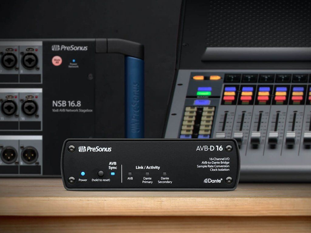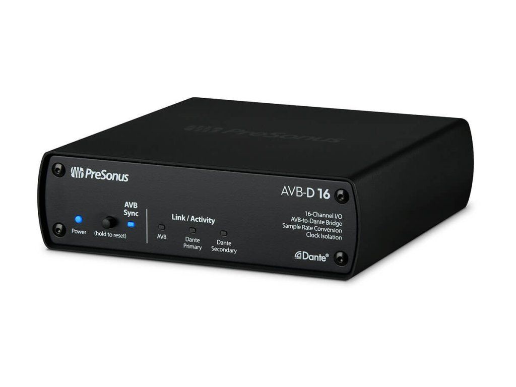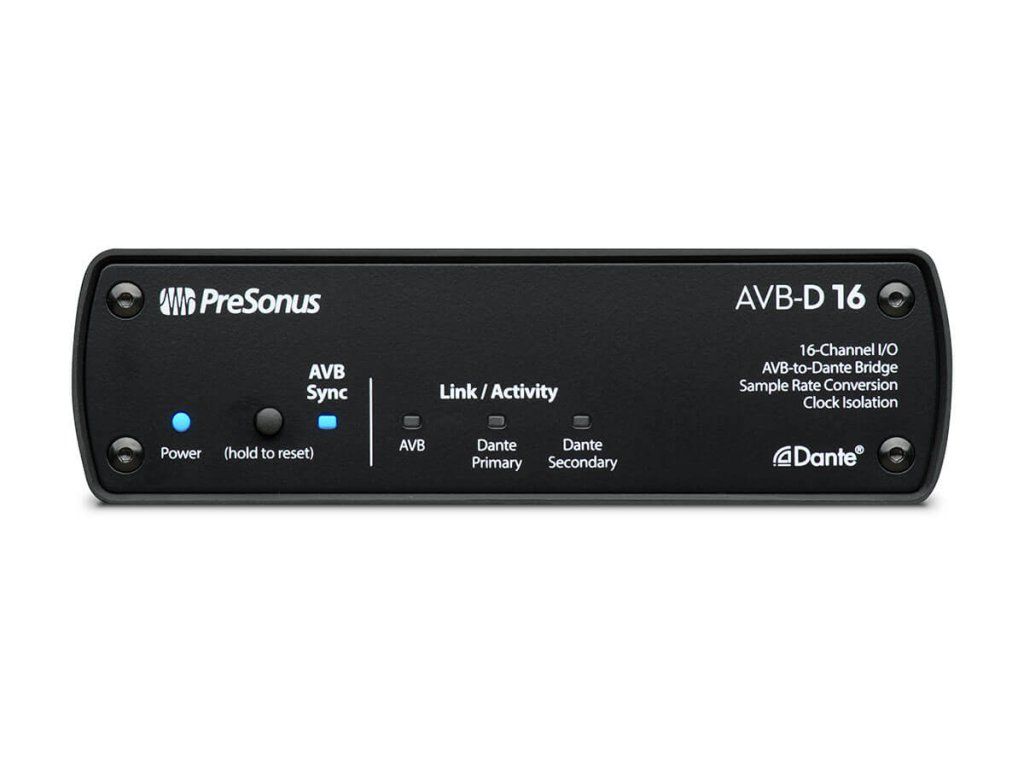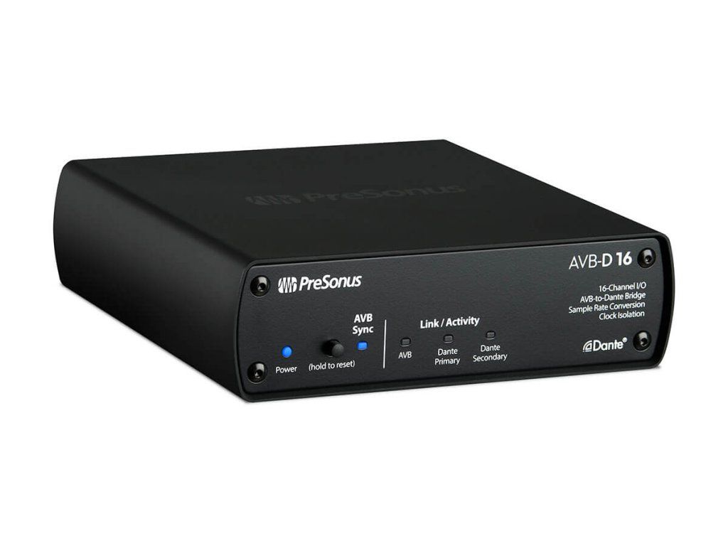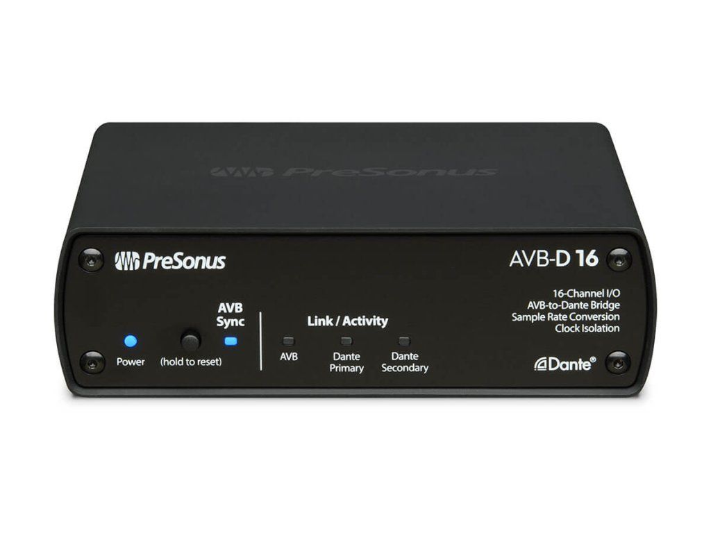 PreSonus AVB-D16 je první plug-and-play koncový bod, který propojuje sítě AVB a Dante ™. Pomocí jednoho jednoduchého zařízení můžete mezi těmito sítěmi přijímat a odesílat až 16 zvukových kanálů, což z něj dělá perfektní řešení pro připojení vašeho AVB ekosystému StudioLive Series III k vašim oblíbeným Dante zařízením, jako jsou například reprosoustavy s konstantní směrovostí PreSonus CDL-12. Integrovaná asynchronní konverze vzorkovacího kmitočtu v AVB-D16 zajišťuje přesnou izolaci synchronizace mezi sítěmi AVB a Dante pro reprodukci čistého a precizního zvuku bez výpadků nebo rušivých artefaktů.