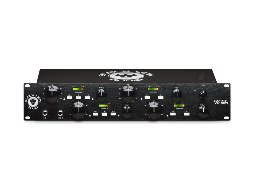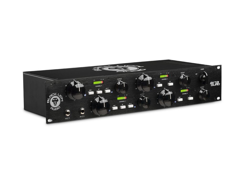 Balck Lion Audio - B173 Quad je čtyřkanálový mikrofonní předzesilovač inspirovaný obvody se známe klasiky "1073ky". Vylepšené zesílení a nižší úroveň šumu dláždí cestu k čistšímu zvuku s nižším zkreslením, zatímco vstupní a výstupní transformátory Cinemag udržují zvuk hladký a teplý. Dva DI (Hi-Z) vstupy na předním panelu dodávají kytarám, klávesám a syntezátorům harmonicky bohatý tón a stupňovitý vstupní zisk a variabilní útlum výstupu umožňují dokonalou kontrolu nad saturací transformátoru.
