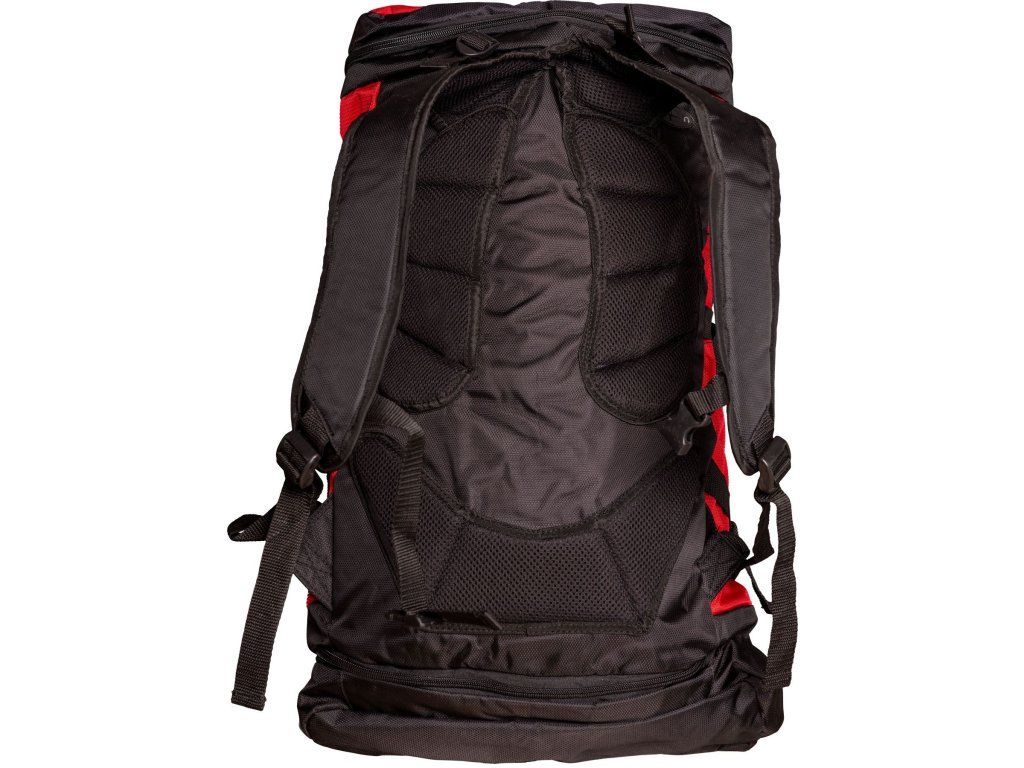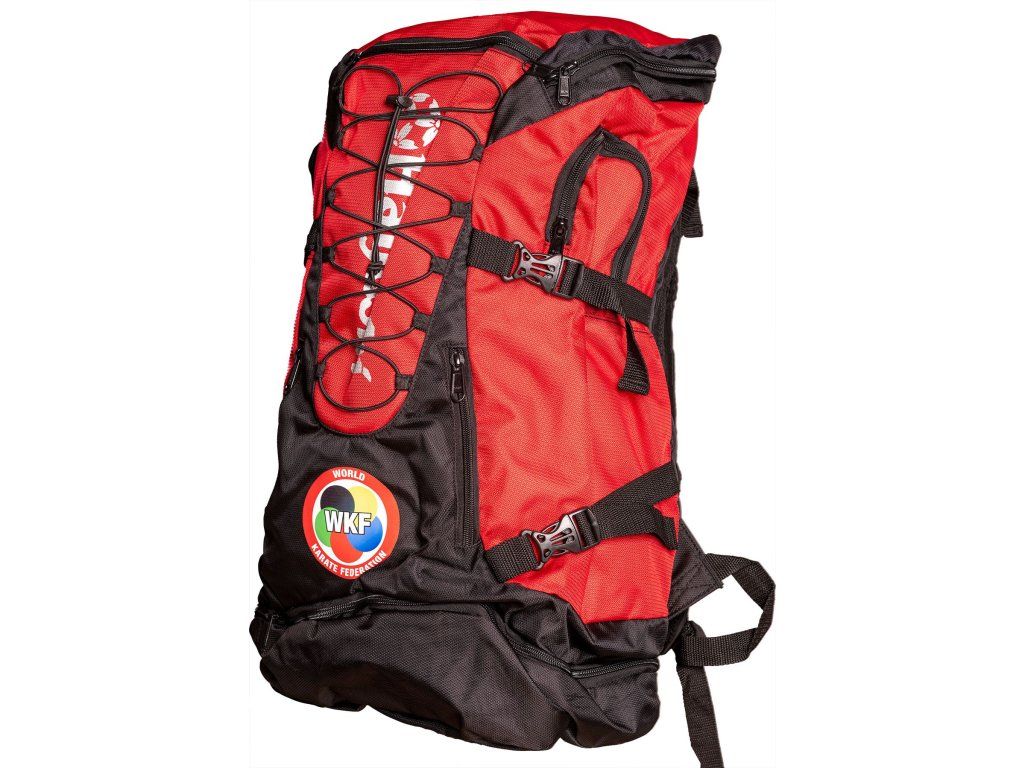 Prostorná horní kapsa má v nenaplněném stavu délku 56 cm a lze ji rozšířit o další přihrádku (cca délka 30 cm) pomocí zipového systému ve spodní části. Četné stahovací šňůry dodávají „Giant WKF“ stabilitu a zajišťují příjemné rozložení nákladu. Sportovní batoh Hayashi je vybaven několika organizačními přihrádkami, abyste měli na cestách vše po ruce. V úzkých bočních přihrádkách je prostor až pro 1,5litrové láhve, se kterými „Giant WKF“ boduje zvláště dobře jako společník na sportovních akcích. Po cvičení si můžete snadno sbalit své propocené oblečení, boty nebo mokré ručníky pomocí systému předního plnění prodlužovací přihrádky. Stabilní síťovaná vložka na zadní straně zajišťuje stálou výměnu vzduchu a uvolňuje vlhkost ven. Rozsáhlá výbava Hayashi „Giant WKF“ zahrnuje také délkově nastavitelný nosný systém a polstrované kontaktní podložky na zadní straně. sportovní design Hayashi WKF dostatek úložného prostoru s individuálním nástavcem stahovací šňůry pro stabilizaci nákladu ergonomický nosný systém materiál odolný proti povětrnostním vlivůmDoplňkové parametry