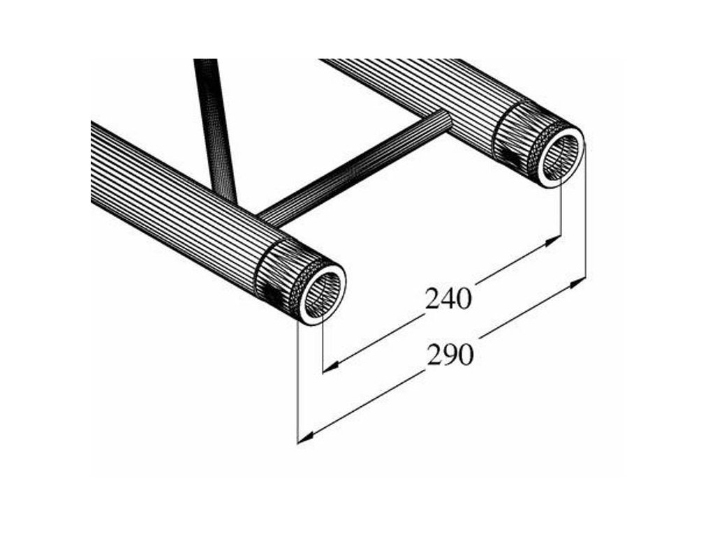 BILOCK E-GL22 2-point truss systemBILOCK E-GL22 is a 2-point truss system made of aluminum. The individual elements are connected via two cones, pivots and pins.The advantage of the conical connection system is that the cones completely fit into the main chords so that highest load capacity is guaranteed. The Quick-Lock system enables fast, efficient and highly aesthetic assembly when the truss constructions are frequently assembled and dismantled.The two main chords are made of 50 mm aluminum tube with 2 mm wall thickness and offer a good relation between strength and weight. The braces have a diameter of 20 mm with 2 mm wall thickness and leave enough space for installing couplers, hooks and clamps.With 290 mm outer dimensions, BILOCK E-GL22 is a stable truss system for higher loads and extended durability. This system is mainly designed for intense use in stage installations, fair installations, event installations but also for permanent installations in discotheques and theatres.Its polished surface makes this universal system a real eyecatcher. Due to its wide range of standard system lengths, corners, circles and accessory, this system is highly versatile and offers unlimited design possibilities.The documentation of this truss system is closely related to the Codes of Practice SQ P1 - Truss Systems published by the VPLT/PLASA. The load table as calculation base can be downloaded from the Internet before buying the product!Please note: this truss system must never be combined with other systems! 2-point truss systemEasy installation Low weight For exhibition and shop installers, discotheque and theatre installations 1 x Connection set included Trusspipe: 50 mm Made in EuropeShipping weight: 15.75 kg