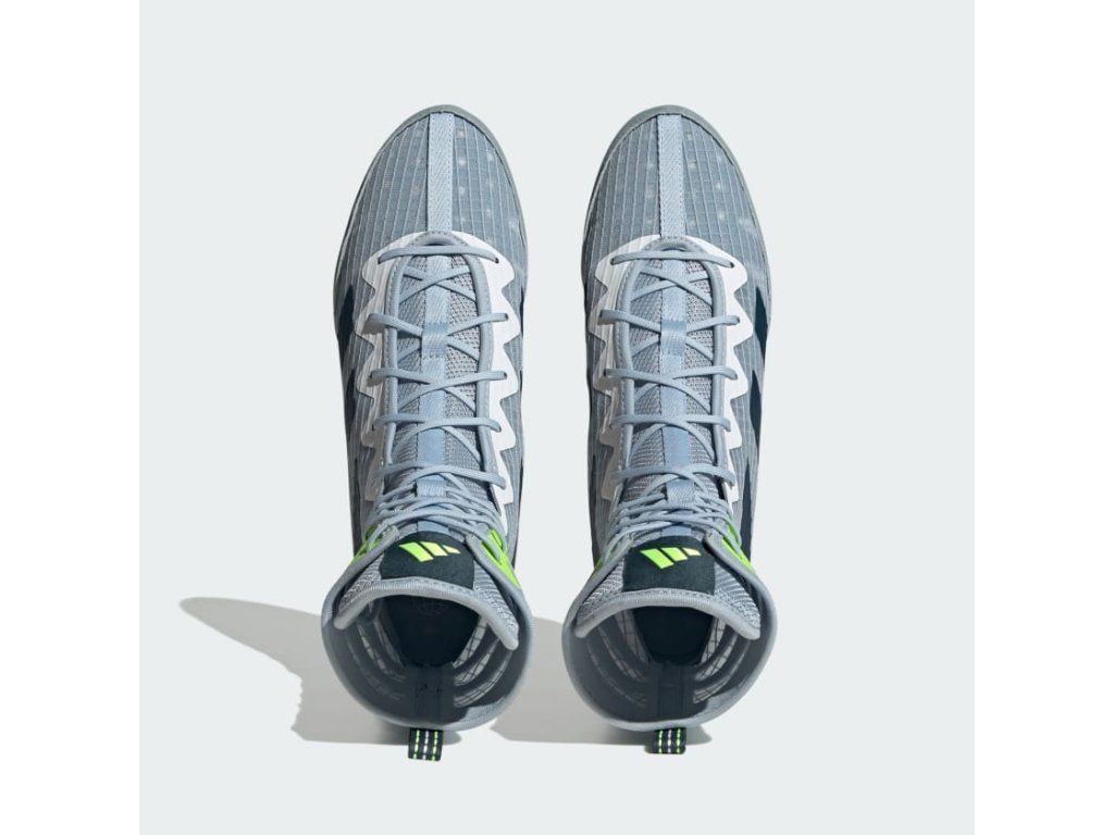 Boxerské Boty adidas Box Hog 4 - šedá PRODYŠNÉ BOXERSKÉ BOTY VYROBENÉ ČÁSTEČNĚ Z RECYKLOVANÝCH MATERIÁLŮ. Boxerské boty adidas Box Hog vydrží Váš trénink na vysoké úrovni díky prodyšnému svršku ze síťoviny a vnitřním výztuhám. Vysekaný EVA klín podpírá vaši nohu a zajišťuje stabilní postoj. Svršek boty je vyroben z řady recyklovaných materiálů a obsahuje minimálně 50 % recyklovaného podílu. Boxerské boty jsou specifickou obuví, která má svá pravidla při jejich používání a chtě nechtě je potřeba botám věnovat při nazouvání a vyzouvání potřebný čas. Boty při nazutí je zapotřebí plně rozvázat, aby šlo botu co nejvíce rozevřít, což zajistí lepší komfort při obouvání boty – neúplné rozvázání bot může způsobit popraskání některých švů v oblasti kotníku a nártu. Velikost bot doporučujeme zvolit o půl čísla až číslo větší, než je vaše běžná obuv. Boxerské boty by Vám neměli být na těsno (tak aby vás tlačili), je potřeba zajistit nohám dostatečné pohodlí při uskakování a vyhýbání se úderům. Tyto boty nepovolí tak, jak jste zvyklí u běžné obuvi. Textilní svršek Gumová podrážka Boxerské boty bývají znatelně užší, než je klasická obuv. Doporučujeme o zakoupení větší velikosti, než je Vaše klasická.Doplňkové parametry