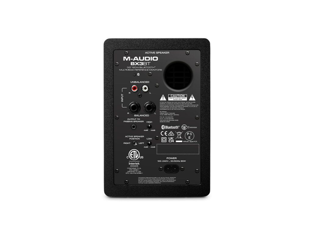M-Audio BX3 BT jsou studiové monitory, nabízející referenční zvuk za vynikající cenu. Zabudovaný 3,5" karbonový woofer a 1" tweeter zajišťují perfektní poslech a perfektně se hodí jak pro studiovou produkci a poslech, tak i pro běžná multimedia. Nabízejí možnost bezdrátového připojení přes Bluetooth, možnost volby levé/právé strany a 100W výkonu dělají z BX3 jasnou volbu pro amatéry i profesionály.