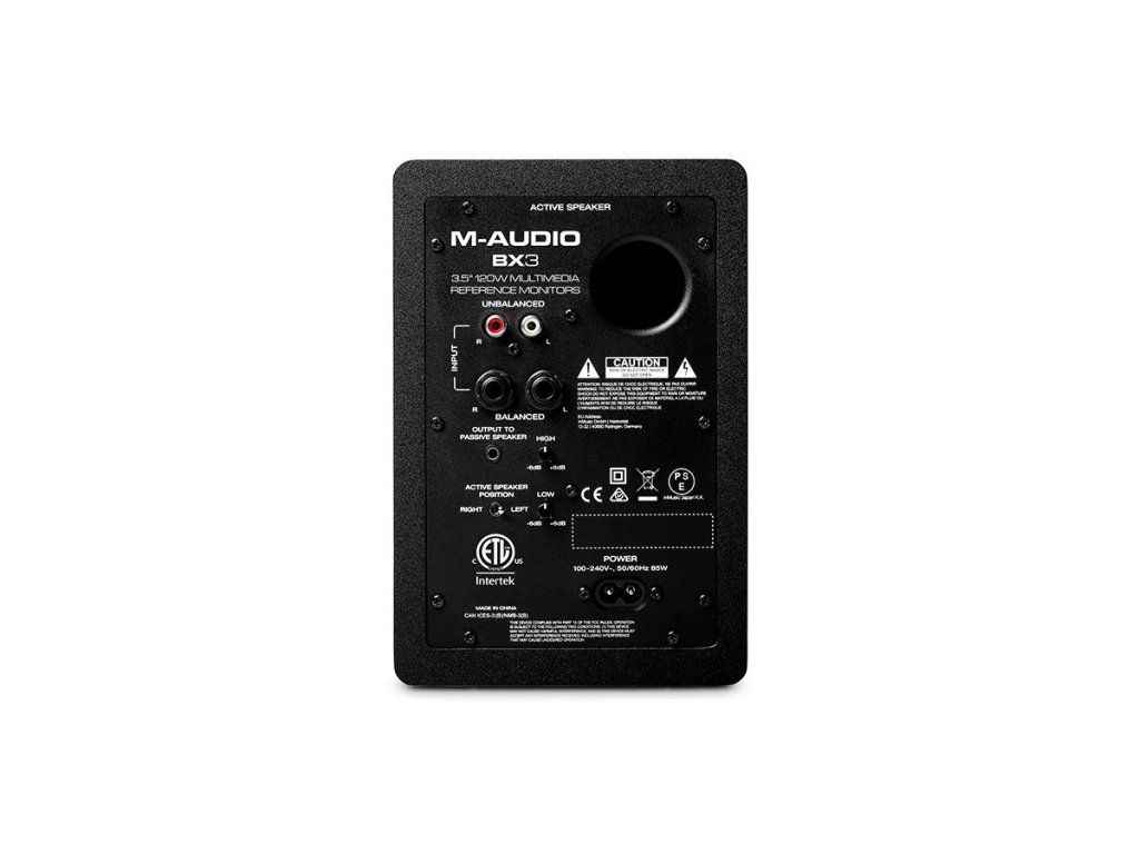 M-Audio BX3 jsou studiové monitory, nabízející přesný referenční zvuk za vynikající cenu. Zabudovaný 3,5" karbonový woofer a 1" tweeter zajišťují perfektní poslech a perfektně se hodí jak pro studiovou produkci a poslech, tak i pro běžná multimedia. Možnost volby levé/právé strany a 100W výkonu dělají z BX3 jasnou volbu pro amatéry i profesionály.