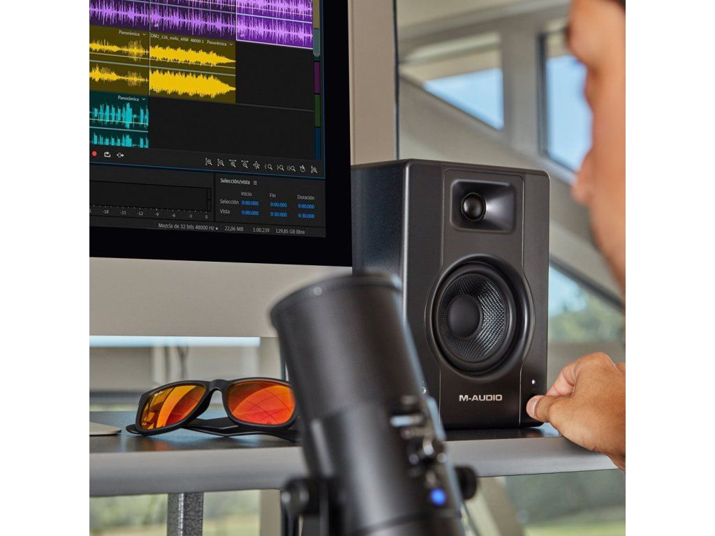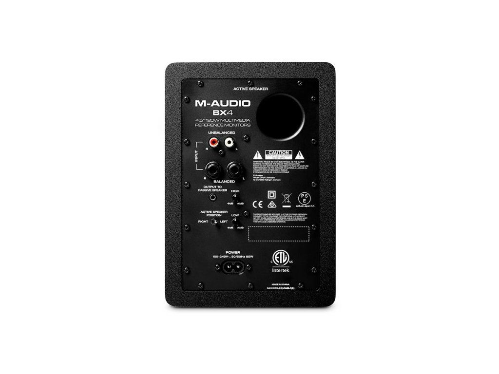 M-Audio BX4 jsou studiové monitory, nabízející přesný referenční zvuk za vynikající cenu. Zabudovaný 4,5" karbonový woofer a 1" tweeter zajišťují perfektní poslech a perfektně se hodí jak pro studiovou produkci a poslech, tak i pro běžná multimedia. Možnost volby levé/právé strany a 120W výkonu dělají z BX4 jasnou volbu pro amatéry i profesionály. Cena je za pár.