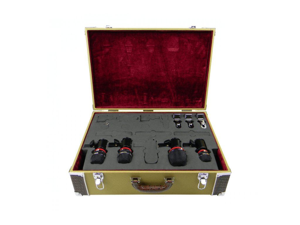 - 4 mikrofony včetně odpružených držáků a držáků na okraje bubnů.