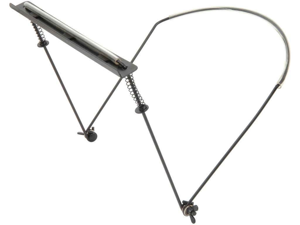 Pružinová svorka s nastavitelným krčním obloukem pro uchycení harmoniky v poloze pro hraní bez použití rukou.Rozměry: 220 x 210 x 20 mm