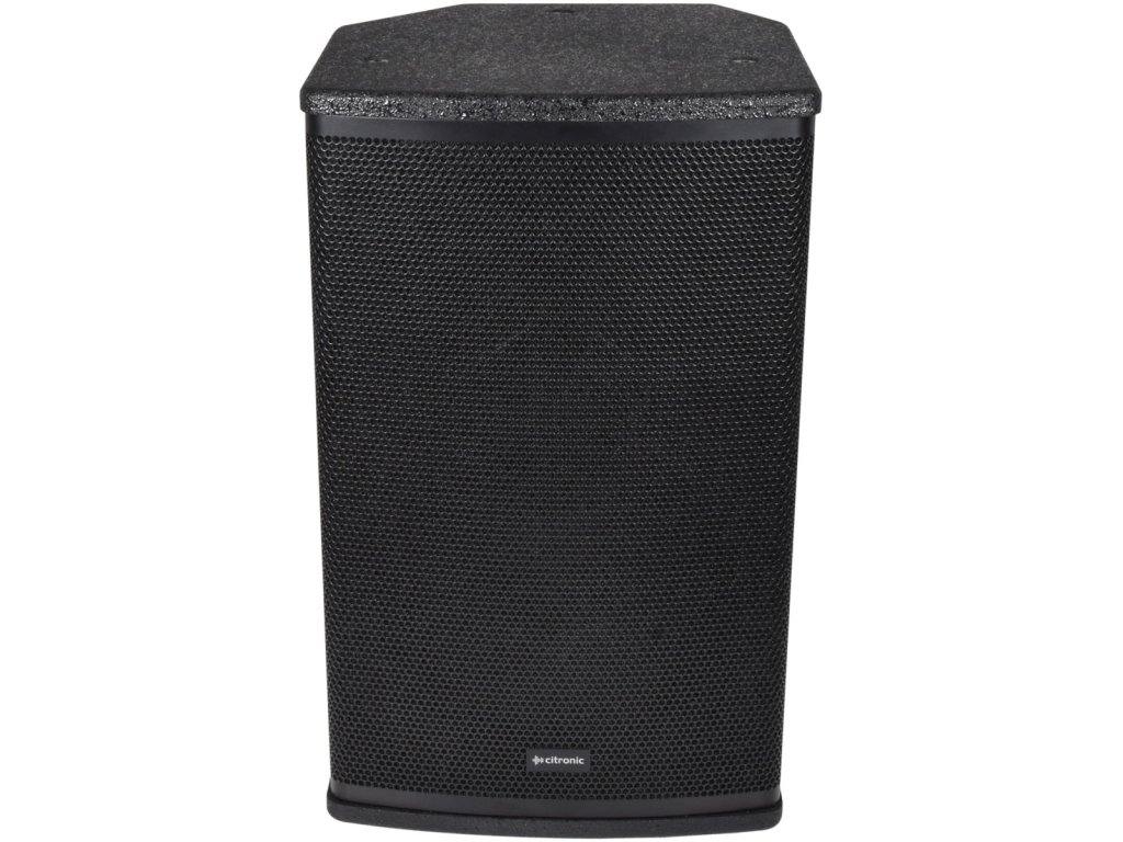 Prémiový pasivní 10" reprobox s dřevěnou MDF ozvučnicí opatřenou odolnou povrchovou úpravou (polyurea) a práškově lakovanou ocelovou mřížkou. Hlavní 10" měnič a 1,35 " titanový membránový HF kompresorový měnič v kombinaci s vyladěnou ozvučnicí poskytují vyváženou reprodukci. Zadní panel je osazen dvěma paralelními vstupy Speakon, které umožňují připojení k dalším reproduktorům. Reprobox disponuje dvěma bočními úchyty pro pohodlnou manipulaci a 35 mm objímkou ("hnízdo") pro instalaci na stojan. Na zadní straně jsou dvě různá zkosení pro možnost šikmého umístění na zem nebo pro zavěšení pomocí držáku ve tvaru "U", který je součástí balení. Na dvou protilehlých stranách je několik závitových bodů M8. Doporučeno pro použití se zesilovači Citronic řady PLX, D a H.Konstrukce: MDF s polyureovým povlakem + práškově lakovaná ocelová mřížka