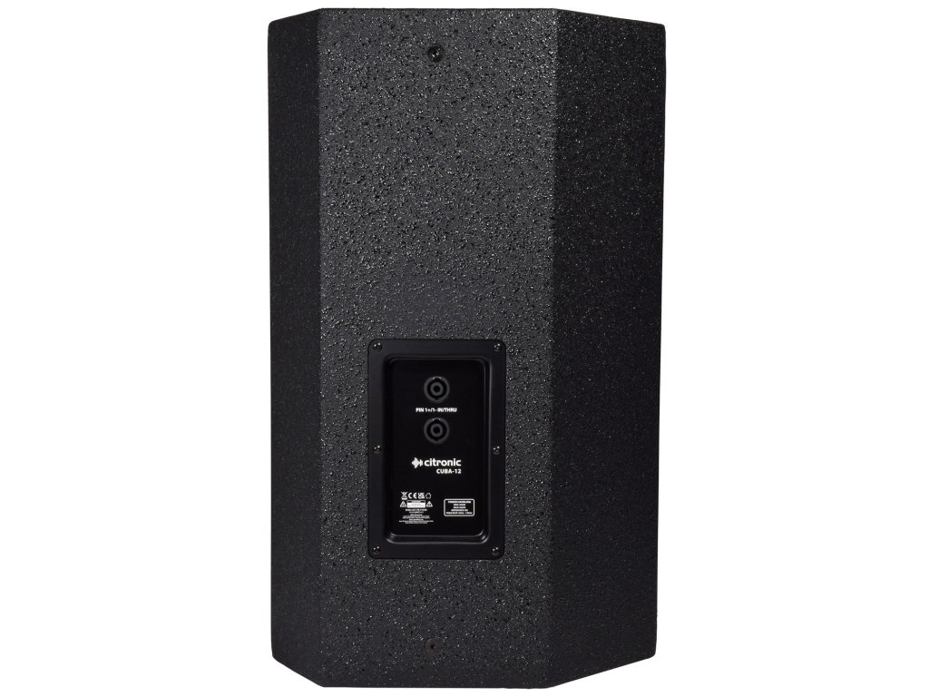Prémiový pasivní 12" reprobox s dřevěnou MDF ozvučnicí opatřenou odolnou povrchovou úpravou (polyurea) a práškově lakovanou ocelovou mřížkou. Hlavní 12" měnič a 1,35 " titanový membránový HF kompresorový měnič v kombinaci s vyladěnou ozvučnicí poskytují vyváženou reprodukci. Zadní panel je osazen dvěma paralelními vstupy Speakon, které umožňují připojení k dalším reproduktorům. Reprobox disponuje dvěma bočními úchyty pro pohodlnou manipulaci a 35 mm objímkou ("hnízdo") pro instalaci na stojan. Na zadní straně jsou dvě různá zkosení pro možnost šikmého umístění na zem. Na dvou protilehlých stranách je několik závitových bodů M8. Doporučeno pro použití se zesilovači Citronic řady PLX, D a H.Konstrukce: MDF s polyureovým povlakem + práškově lakovaná ocelová mřížka
