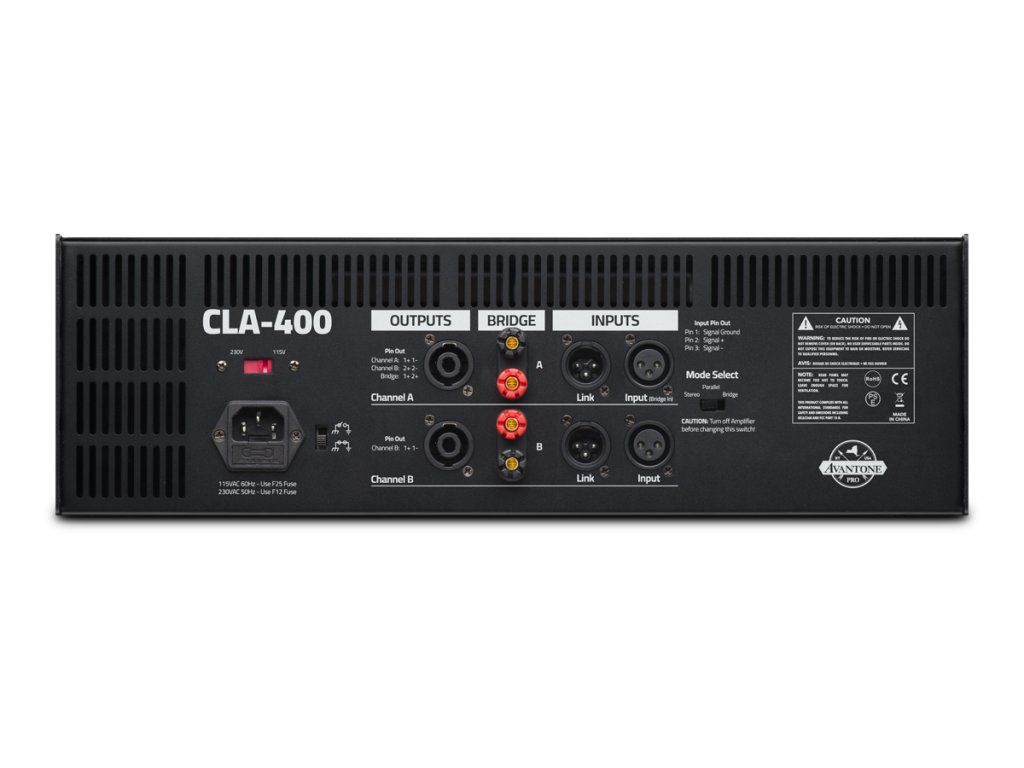 CLA-400 je profesionální studiový referenční zesilovač s výkonem 2x 400 W, možností zapojení do můstku (1x 800 W) a pasivním chlazením. Je určen pro střední a hlavní studiový poslech.