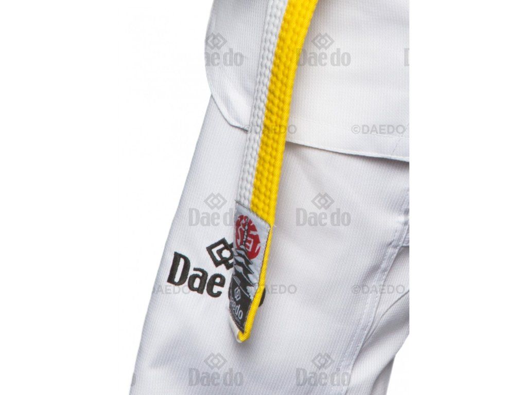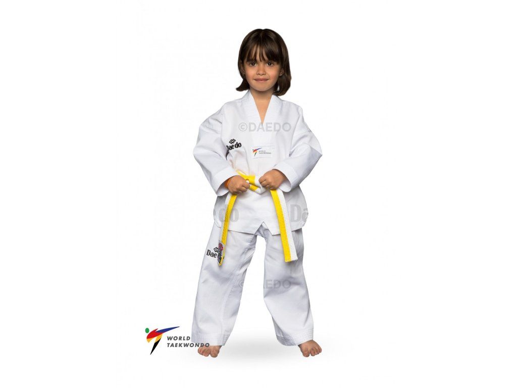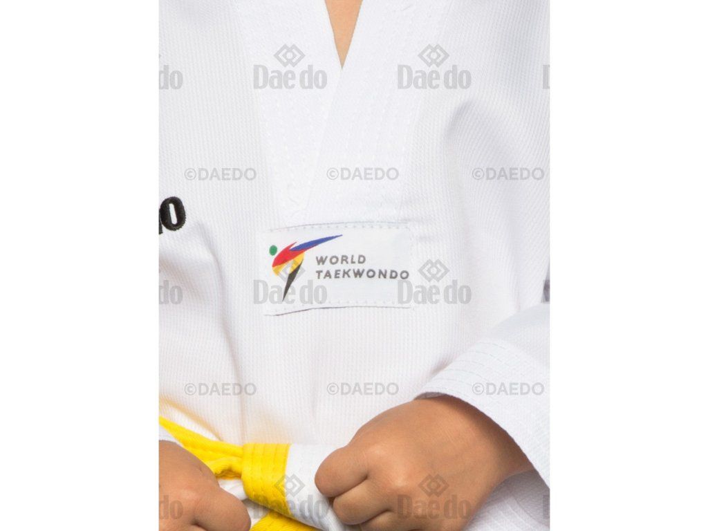 Daedo dobok WT BASIC Základní model doboku od Daedo je díky svému poměru cena/výkon ideální volbou pro každého začínajícího taekwondistu WT. Nápis taekwondo na zádech je vyšitý. Kabátek je s bílým V. Složení látky je 80% polyester a 20% bavlna. Pásek není součástí doboku!Doplňkové parametry