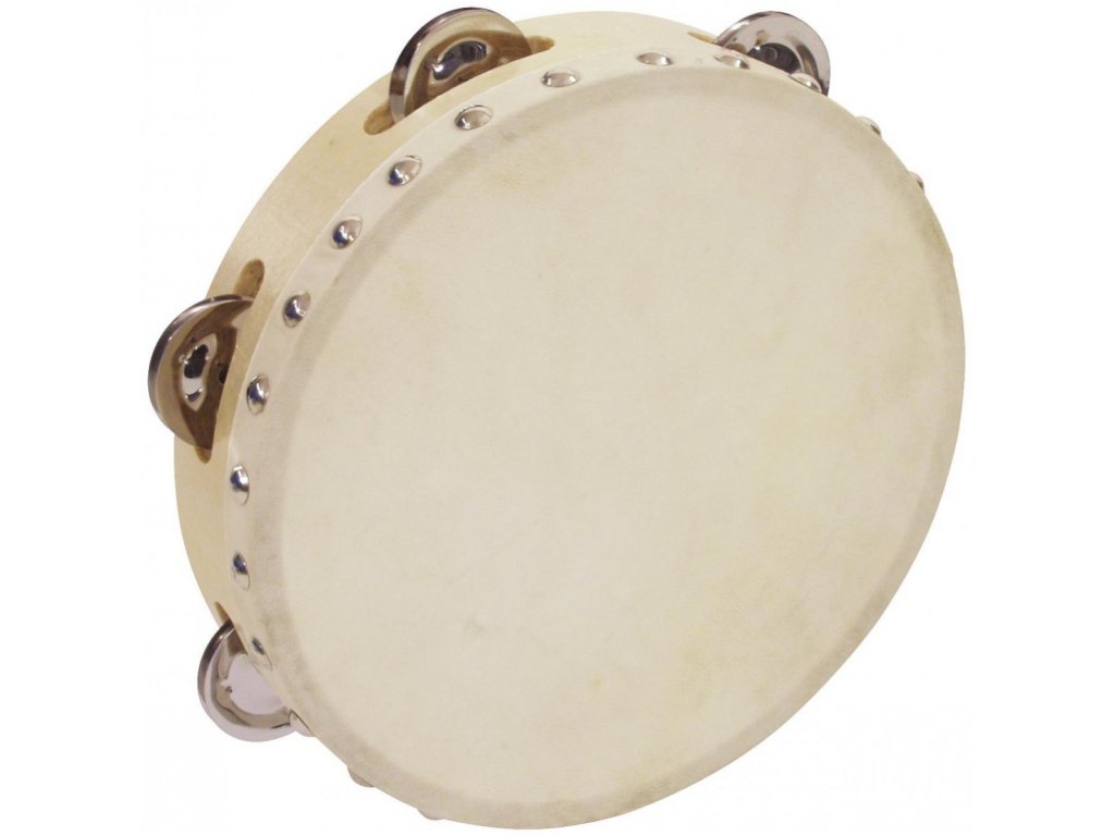 Tamburína s blánou. Průměr 20,32 cm (8"). 6 párů plíšků. Přírodní kůže přibitá na dřevěném rámu.Barva: Světle hnědá