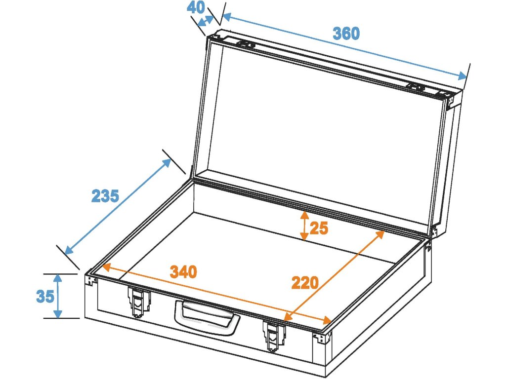 Transportní kufřík pro 3 podlahové kytarové efekty. Hliníkové lišty, 1,5 mm překližka, chromové zámky. Rozměry 320 x 220 x 55 mm.Color: Black