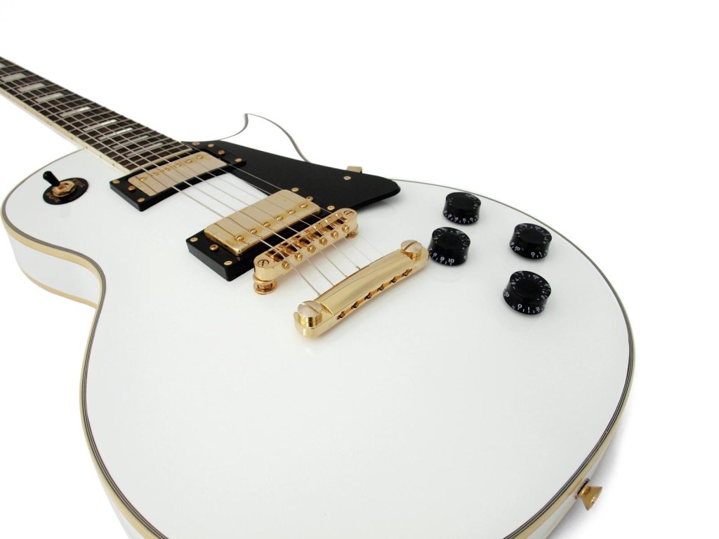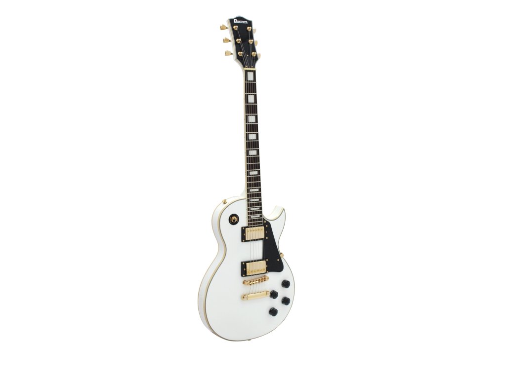 Elektrická kytara typu Les Paul. Tělo lípa, lepený krk javor, hmatník blackwood, 22 pražců, menzura 630 mm, pevná kobylka typu Tune-O-Matic, zlatá mechanika, pickguard černý plast, 2x dvoucívkový snímač (Humbucker) se zlatým krytem, 2x ovládání hlasitosti, 2x ovládání tónu, 3-polohový přepínač. Barva bílá lesklá.Tělo: lípa