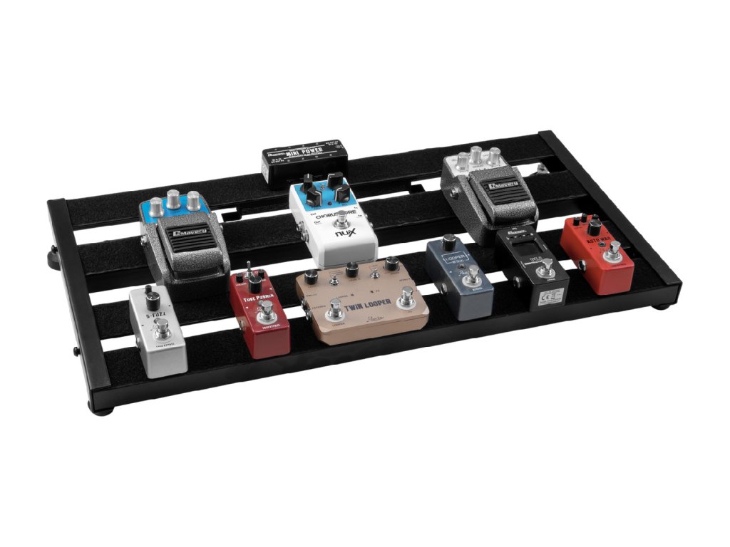 Univerzální Pedal Board pro kytarové efekty, možnost umístění až dvanácti efektových pedálů pomocí suchého zipu (součástí balení), výškově nastavitelný v rozsahu +/- 15 mm, nastavitelná střední příčka. Rozměry (š x v x h) 60 x 7 x 30,5 cm, hmotnost 3,78 kg. Barva černá.Materiál: ocel