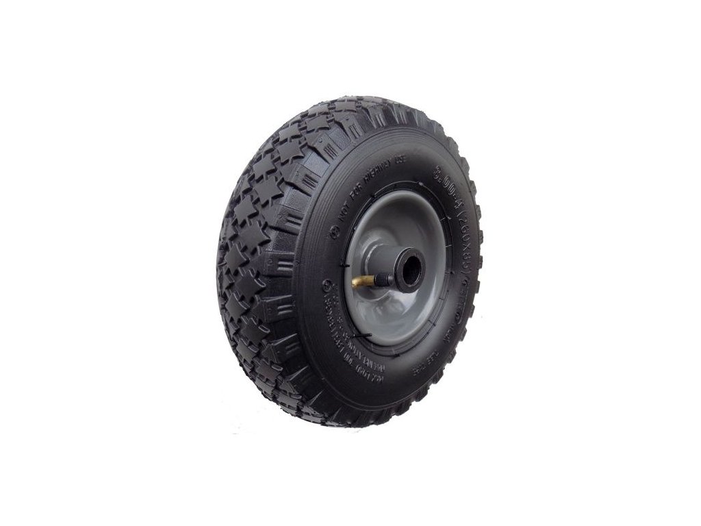 Nafukovací pneumatika na ocelovém disku. Použití především při výrobě vozíků a jiných manipulačních prostředků. Vhodné pro montáž na transportní vozíky. - Nafukovací kola na ocelovém nebo plastovém disku. - Použití u transportních rudlů na zboží, vozíků na sudy atd. 260 mm 85 mm 20 mm Nosnost 150 kg Střed ocelový Uložení jehlové ložiskoDoplňkové parametry