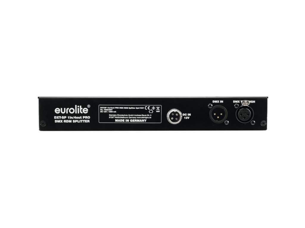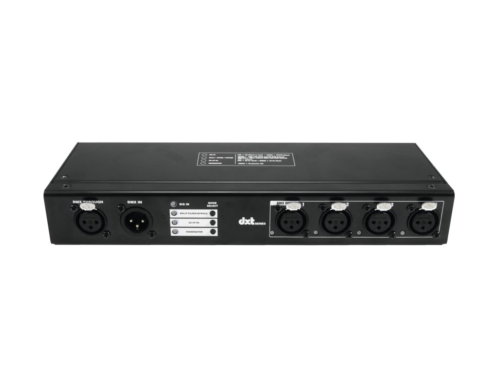 Rozbočovač a zesilovač DMX signálu. Zařízení rozděluje jeden DMX vstupní signál na 4 DMX výstupy. Připojení pomocí standardních 3-pinových XLR konektorů (Neutrik), podpora RDM pro obousměrnou komunikaci. Režim filtrování RDM dat pro eliminaci problémů při používání příslušenství bez podpory RDM. Funkce Bypass pro zpracování signálu podobného DMX u starších zařízení. Nastavitelná výstupní frekvence 22 nebo 44 Hz. Volba pohotovostního režimu při selhání DMX signálu: Hold (zachování posledního nastavení), Blackout (vypnutí svícení), Null (nastavení všech hodnot na minimální). Výstupy jsou galvanicky odděleny. Každý DMX výstup má nezávislé ovládání a LED indikaci stavu. Každý DMX výstup může být připojen až ke 32 DMX zařízením. Instalace do 19“ racku pomocí montážního držáku (objednací číslo 70064872, není součástí dodávky). Vyrobeno v Německu.Napájení: 12V DC, 1 A (síťový adaptér)