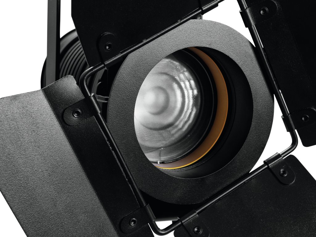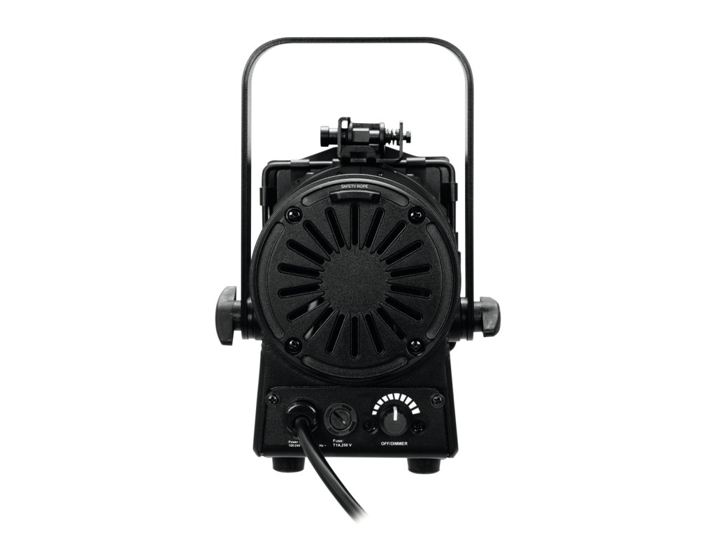 Profesionální divadelní LED reflektor vyzařuje jasné bílé světlo. Světelný efekt je vhodný pro osvětlení divadelních jevišť, televizních studií, veletržních expozic nebo prodejních místností a obchodních domů. Reflektor je osazen výkonnou 17W LED diodou, CRI >90, teplota barev 3000 K. Součástí dodávky jsou dva Frost filtry (vyzařovací úhel 19° a 26°) pro jemnější světelný paprsek. Kontinuální projekce světla bez nežádoucího blikání. Plynulá regulace jasu pomocí potenciometru umístěného přímo na přístroji. Robustní ocelové provedení, možnost umístění na stojan nebo hliníkovou konstrukci. Polohovatelný držák pro nastavení požadovaného sklonu svícení, gumové nohy. Součástí dodávky jsou také klapky a rámeček na barevné filtry.Napájení: 100-240V AC, 50/60 Hz