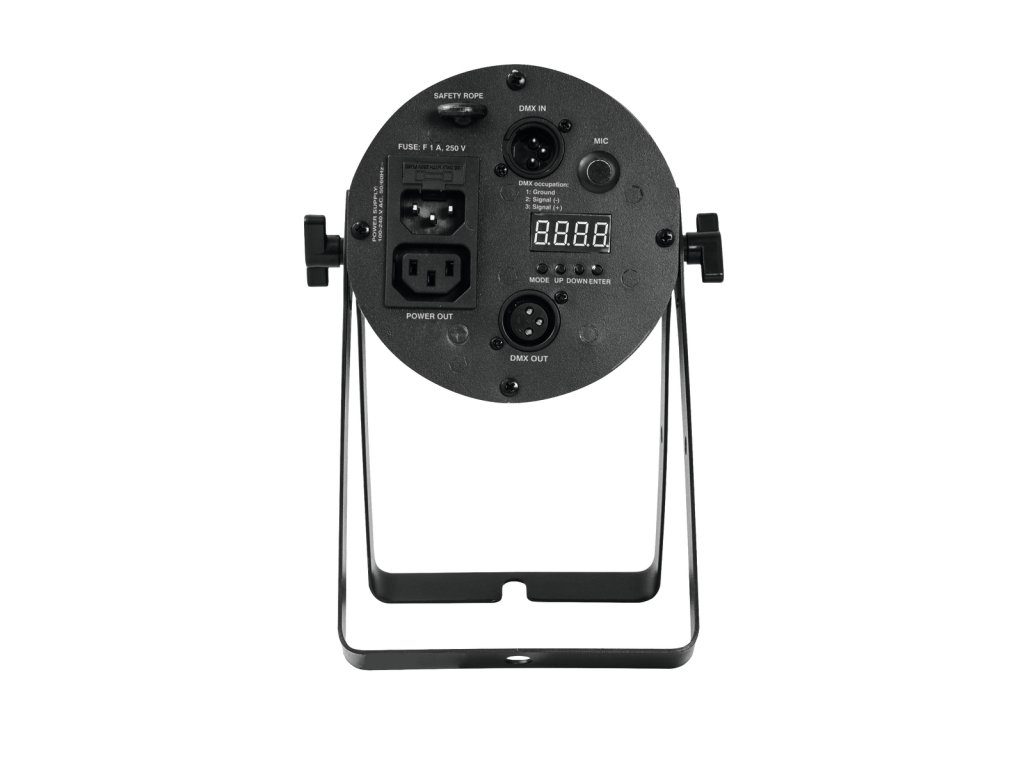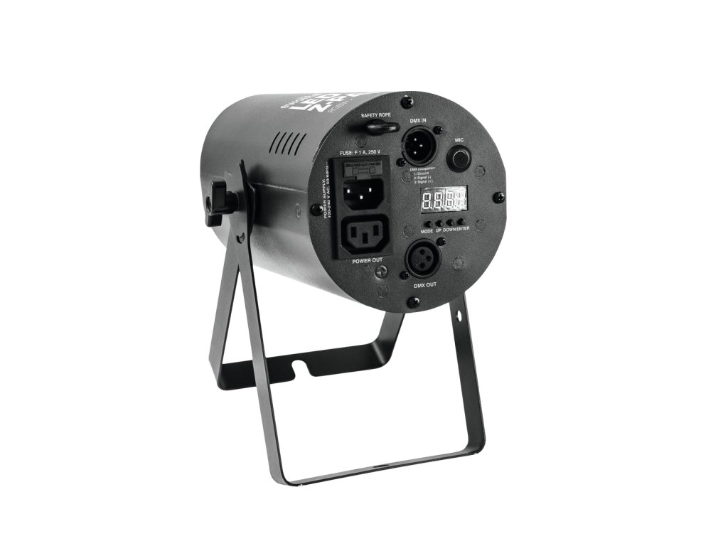 Zoom spot Z-PAR pracuje v samostatném režimu nebo přes DMX. Ovládání DMX512 možné přes jakýkoli komerční DMX ovladač. 4 nebo 9 DMX kanálů volitelných pro různé aplikace. Ovládání zvuku pomocí vestavěného mikrofonu. Nastavitelná citlivost mikrofonu pomocí ovládacího panelu. Motorizovaný zoom s úhlem paprsku 6°- 29°. Funkce: Statické barvy, RGBW směs barev, automatický režim, ovládání zvuku, interní programy, nastavení stmívače a stroboskopu přes DMX, Master/Slave. Vybaveno 4 x 10 W LED 4v1 RGBW. Projekce bez blikání. Ideální i jako floor spot s přídavným držákem. Pohodlné adresování a nastavení pomocí ovládacího panelu s LED displejem a čtyřmi ovládacími tlačítky. Další možnost ovládání pomocí dálkového ovladače EUROLITE IR-7, který je součástí dodávky. Spínaný napájecí zdroj pro provoz mezi 100 a 240 volty. Připraveno k připojení pomocí přiloženého napájecího kabelu IEC s bezpečnostní zástrčkou. Černé hliníkové pouzdro.Napájení: 100-240 V AC, 50/60 Hz