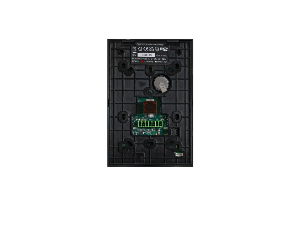 Nástěnný DMX ovladač s multifunkčním touchpadem a softwarem pro DMX ovládání světelných efektů bez nutnosti počítače. Možnost přenosu až 512 DMX kanálů. Zapsání scén do samostatné paměti přehrávače a přehrávání sekvencí bez počítače. Spouštění hodin v reálném čase pro každou scénu (den, týden, měsíc, rok). Automatické obnovení scény při náhodném výpadku napájení. 40 programovatelných scén/chase. Ovládání přes DMX; funkce master/slave; zvuk-světlo; aplikace Wi-Light 2. Ve spojení s Pro DMX 2 lze aktualizovat firmware. Kompatibilní s Win 7, Win 10, Linux, OS X 10.13 nebo novějším. Pooužití: restaurace, bary a hotely; vybavení veletrhů a obchodů; instalaceNapájení: 9-24V DC 100 mA