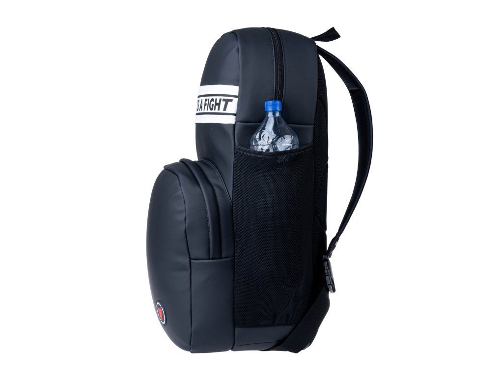 Fighter batoh Leatherette - černá Pohodlný, prostorný, elegantní a účelný. Tak bychom popsali nový batoh od značky Fighter. Je navržen především pro sportovce, kteří potřebují prostor na své vybavení a hledají alternativu ke sportovním taškám, ale i pro ty, kteří rádi cestují! Batoh je vyroben z pevné koženky. Má dvě uzavíratelné kapsy. Zevnitř větší kapsy, o objemu přibližně 25l, je pouzdro na notebook. Druhá, menší kapsa má objem asi 5l. Na obou bocích jsou přišité síťky navržené speciálně pro láhve nápojů. Vejde se zde láhev s objemem 1,5l. Zadní část batohu je polstrovaná. Popruhy jsou podšité měkkou koženkou. Charakteristika Vyrobeno v České republice Pevný a odolný materiál Nastavitelné a polstrované popruhy Celkový objem je 30 L Univerzální použití pro sport i turistiku Rozměr 60 x 30 x 15 cm Vnitřní kapsa na notebookDoplňkové parametry