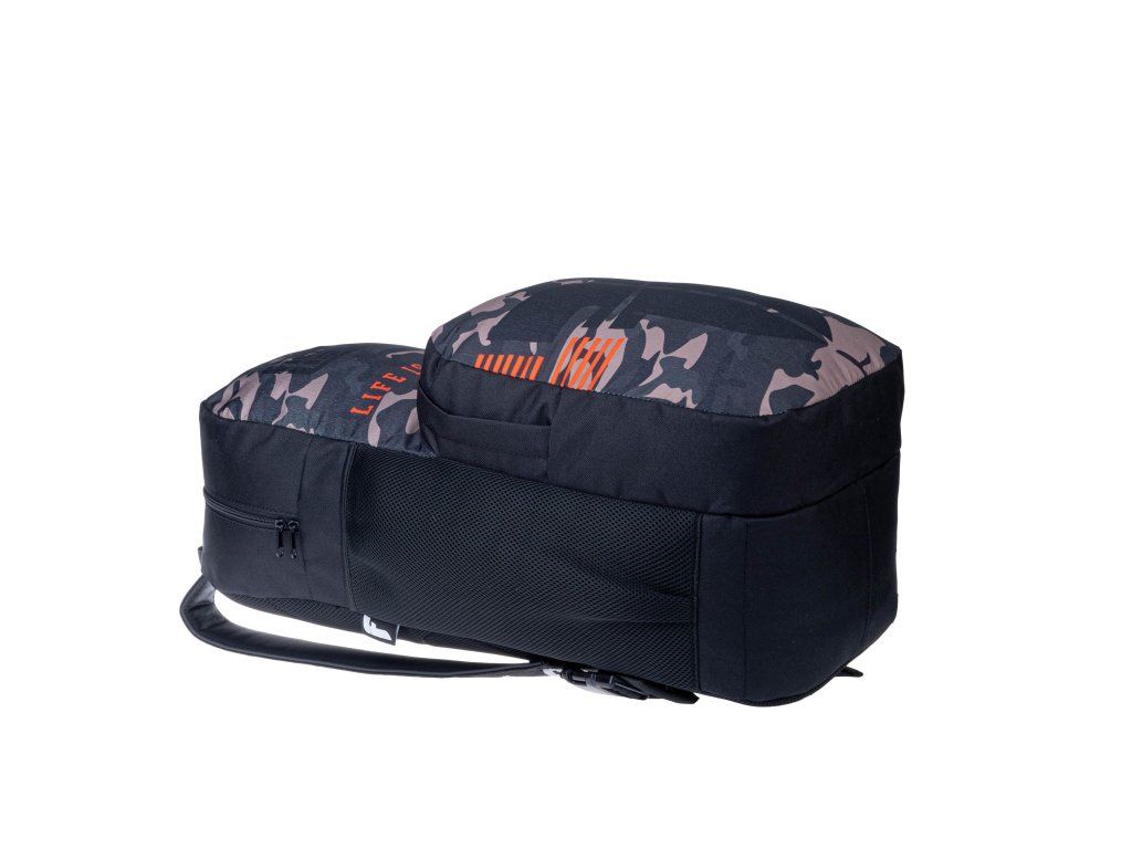 Fighter batoh Squad - khaki camo Pohodlný, prostorný, elegantní a účelný. Tak bychom popsali nový batoh od značky Fighter. Je navržen především pro sportovce, kteří potřebují prostor na své vybavení a hledají alternativu ke sportovním taškám, ale i pro ty, kteří rádi cestují! Batoh je vyroben z pevného polyesteru se zátěrem. Má dvě uzavíratelné kapsy. Zevnitř větší kapsy, o objemu přibližně 25l, je pouzdro na notebook. Druhá, menší kapsa má objem asi 5l. Na obou bocích jsou přišité síťky navržené speciálně pro láhve nápojů. Vejde se zde láhev s objemem 1,5l. Zadní část batohu je polstrovaná. Popruhy jsou podšité měkkou koženkou. Charakteristika Vyrobeno v České republice Nepromokavý, pevný a odolný materiál Nastavitelné a polstrované popruhy Celkový objem je 30 L Univerzální použití pro sport i turistiku Rozměr 60 x 30 x 15 cm Vnitřní kapsa na notebookDoplňkové parametry