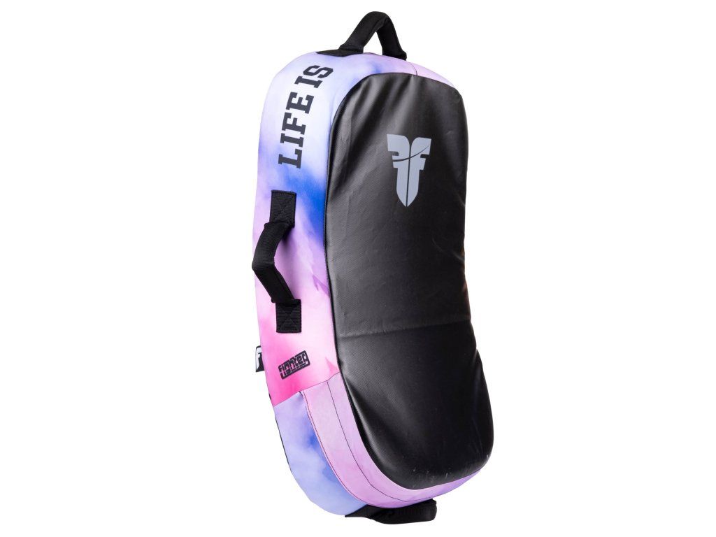 Lapa Fighter - MULTI GRIP - Life is a Fight - Pink v oválném tvaru je vyrobena pro nácvik kopů a úderů. Tento mírně prohnutý blok má pro větší bezpečnost zakulacené rohy a perfektní ergonomický tvar. Lapa je nově vybavena pěti úchyty a pro větší variabilitu tréninku nechybí ani tři popruhy na zadní části. Výplň tvoří speciální molitanová směs, lapa tedy skvěle pohlcuje i ty nejsilnější údery. Díky univerzálnosti je blok vhodný pro většinu bojových sportů. vysoká životnost výrobku vyrobeno v České republice všechny použité materiály jsou z EU jednoduché upínání na suchý zip potisk ze strany je sublimovanýDoplňkové parametry