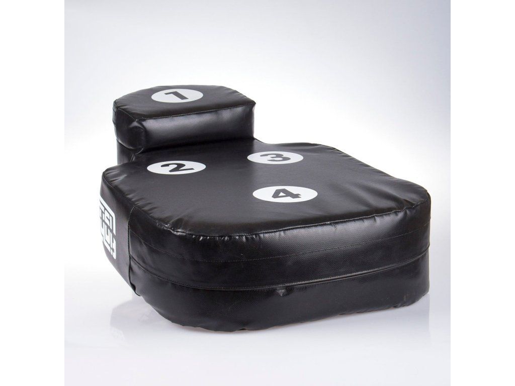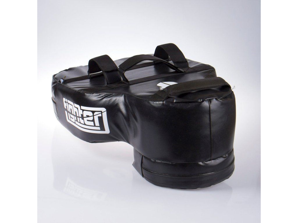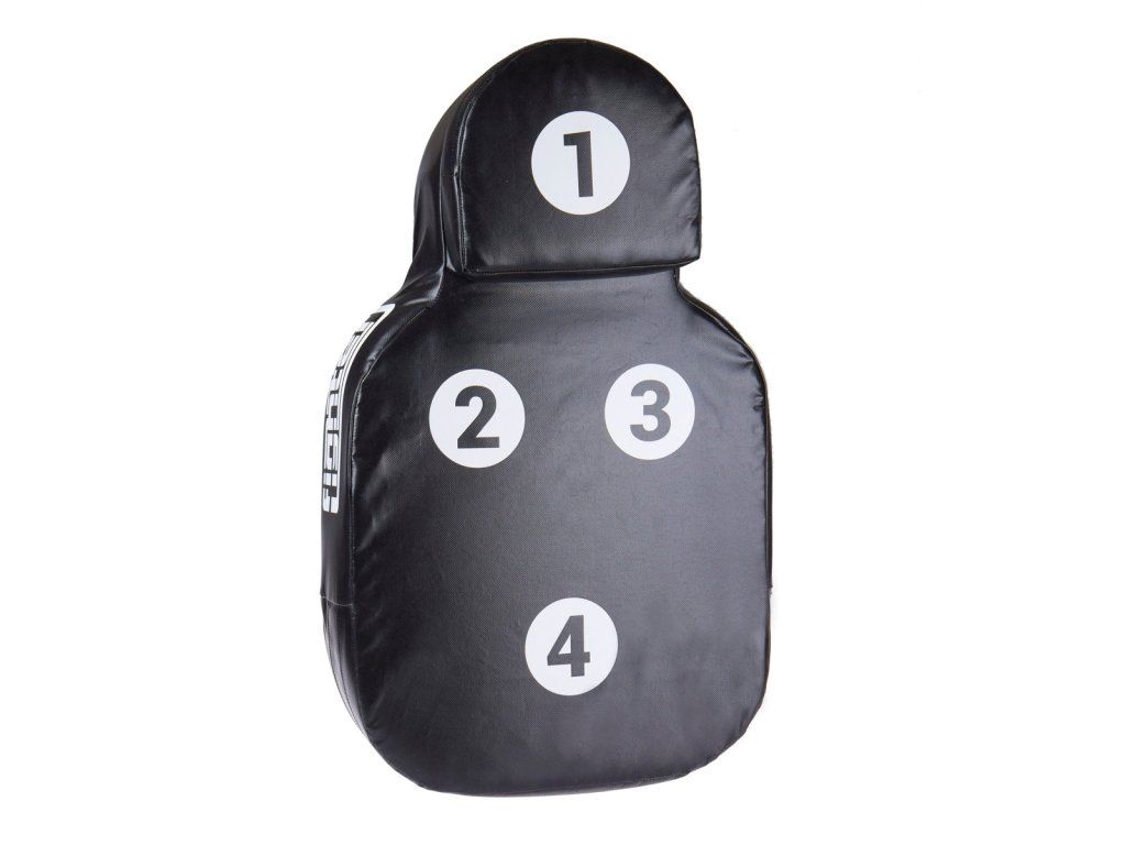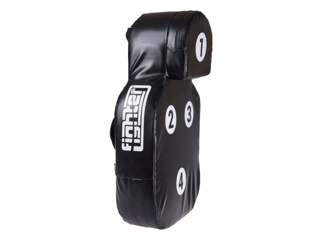 Fighter Body Shield - velký blok Velký blok Fighter je určen k nácviku kopů a úderů. Jeho univerzální použití je výjimečné. Tento velký blok můžete používat ve dvojici s partnerem, ale také jej klidně můžete připnout k zábradlí, tyči, stromu, nebo žebřinám a trénovat samostatně. Také jej můžete používat na zemi k nácvikům úderů, tak jak se cvičí v MMA nebo sebeobraně. Díky malým terčovnicím s čísly můžete trénovat přesnost a různé kombinace. Další výhodou je tvar lidského těla, díky kterému se lépe učíte cílit údery a kopy. Dále oceníte předsunutý tvar hlavy, na němž se výborně trénují údery - zvedáky, anebo kopy kolenem. Tyto charakteristické cviky na běžných lapách nebo boxerském pytli prostě nenatrénujete! Celý blok je cca 4 kg těžký, takže se s ním perfektně manipuluje. Je vyroben z tvrzeného vinylu, který můžete klidně používat v náročných podmínkách i pod širým nebem. Na tomto výrobku jsou kompletně zaoblené rohy, takže při simulaci útoků na cvičence nehrozí žádné zranění z ostrých rohů. Blok je v oblasti "těla" 15 cm silný a síla v oblasti "hlavy" je dokonce 25 cm. Taková tloušťka spolehlivě poslouží i těžkým a silným borcům.. Charakteristika Trvanlivé materiály, vinyl, tvrzený molitan, polypropylenové popruhy Univerzální použité ve dvojici či samostatně Terčovnice s čísly pro nácvik přesnosti a kombinací Tvar lidského těla Vyrobeno v ČR Velikost: výška: 75 cm; max. šířka: 47 cm; max. tloušťka: 22 cmDoplňkové parametry