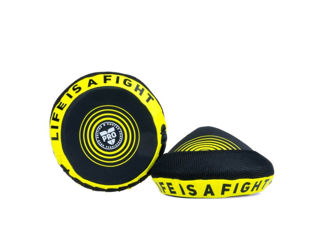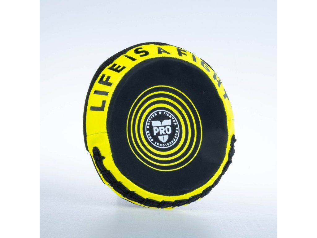 Fighter kulatá lapa Pro Small - černá/neon Pro Fighter Edition je určena především pro profesionální a zkušené zápasníky, kteří hledají kvalitní, ochranyschopné a pohodlné vybavení na tréninky a zápasy. Lapa je vyrobena ze syntetické kůže v zajímavých barvách a s originálním designem. Je vhodná pro trénink úderů, stejně tak, jako k rychlostnímu tréninku. Lapa je lehká a pohodlná jak při úderech, tak i při držení. Vyrobeno ze syntetické kůže Lehká a ergonomickáDoplňkové parametry