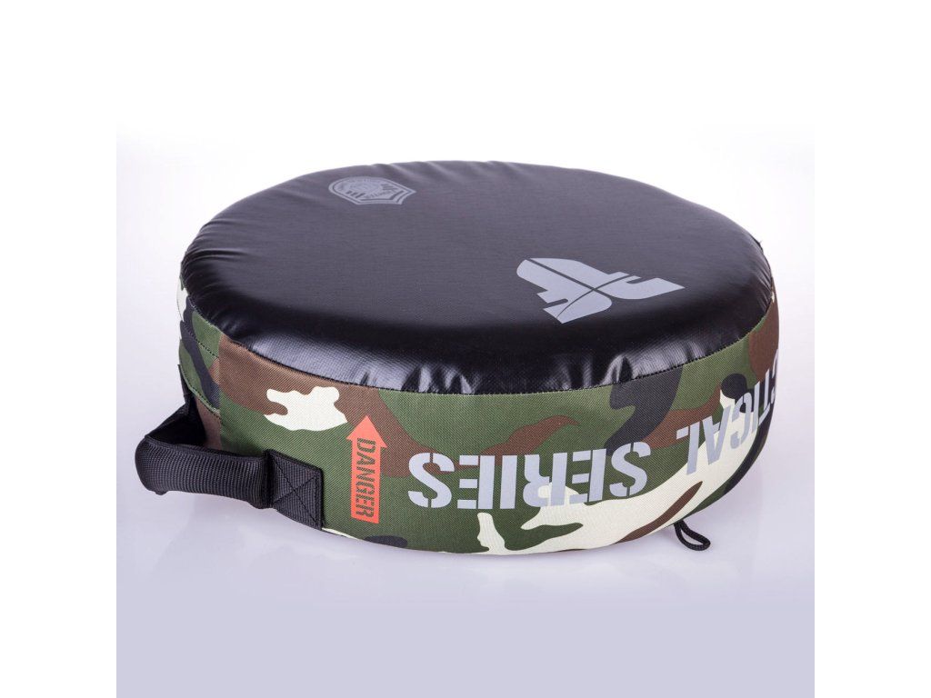 Kulatá lapa Fighter TACTICAL SERIES - Camo nabízí nové tréninkové možnosti. Lapa se dá držet jen jednou rukou, anebo oubouručně. Díky jednoduchému konstrukčnímu řešení, nízké váze a pevnosti použitých nateriálů je tento výrobek vhodný k tréninku všech kopů a úderů, stejně tak k silovému, nebo rychlostnímu tréninku. všechny použité materiály jsou z EU vysoká životnost výrobku vyrobeno v České republice Velikost: průměr: 45 cm; tloušťka: 15 cmDoplňkové parametry