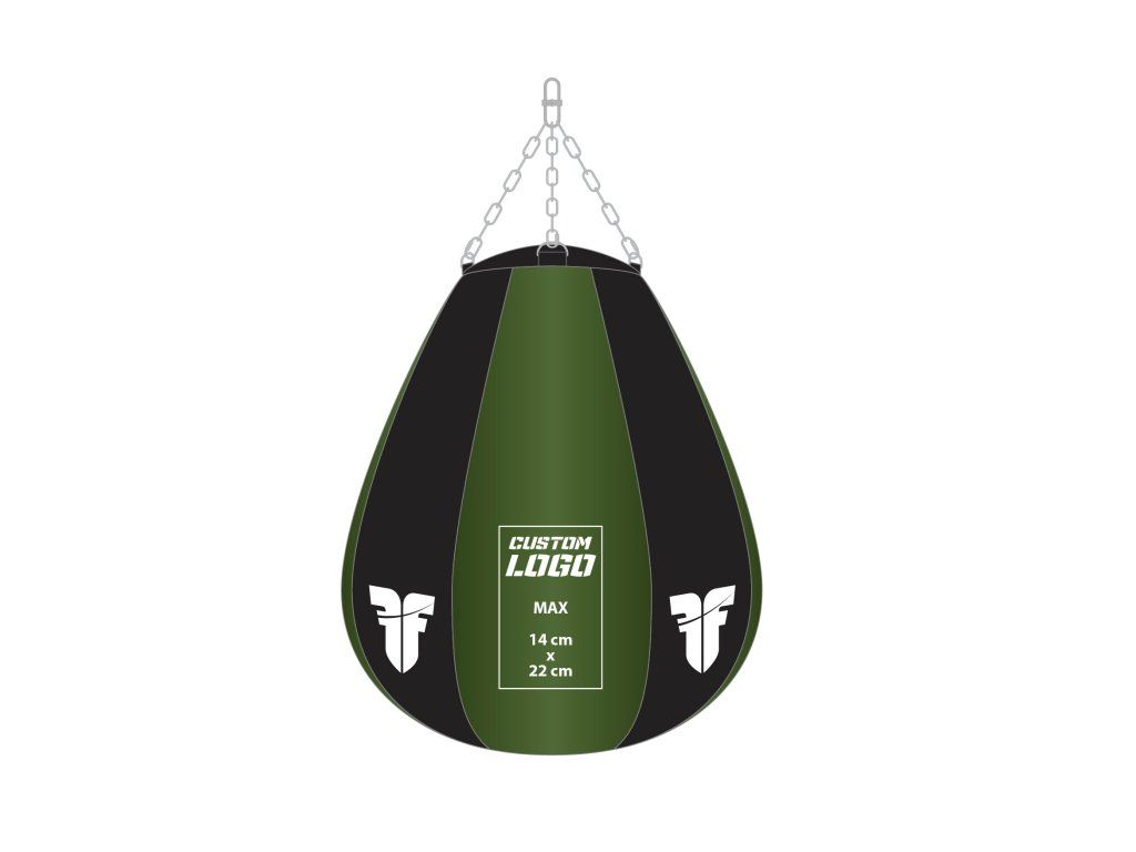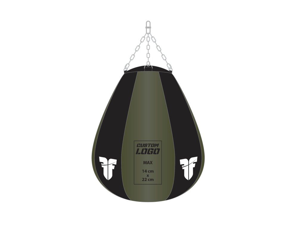 DODACÍ DOBA DO 20 PRACOVNÍCH DNŮ Maximální velikost loga je 14 cm x 22 cm. Nutné dodat podklady ideálně ve vektorové grafice, nebo ve vysokém rozlišení s průhledným pozadím. Logo nám prosím zašlete na e-mail dotazy@hayashi.cz VZHLEDEM K VÝROBĚ NA MÍRU JE NUTNÁ PLATBA PŘEDEM. VÝROBU ZAHÁJÍME AŽ PO JEJÍM OBDRŽENÍ. Fighter Profesionální boxerský pytel HRUŠKA - je vyroben z tvrzeného plastelu. Je vhodný jak do profesionální tělocvičny, tak i pro domácí nácvik technik. Boxerský pytel je vyplněn látkovou střiží a PUR pěnou. Pytel je plněn strojem, proto sesedání výplně je minimální. DRUH PLNĚNÍ: CLASSIC Přibližná váha pytle je 30-35kg, výška: 75 cm , průměr: 65 cm vyrobeno v ČR všechny použité materiály pochází z EU (Itálie, Rakousko, Slovinsko, Česká republika) plněno strojem (látková střiž, koženka + PUR) možnost přidání oddílového loga či úprava designu dle zákazníka délka řetězů od vrcholu pytle po karabinu 35cmDoplňkové parametry
