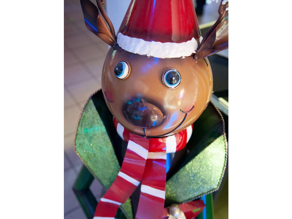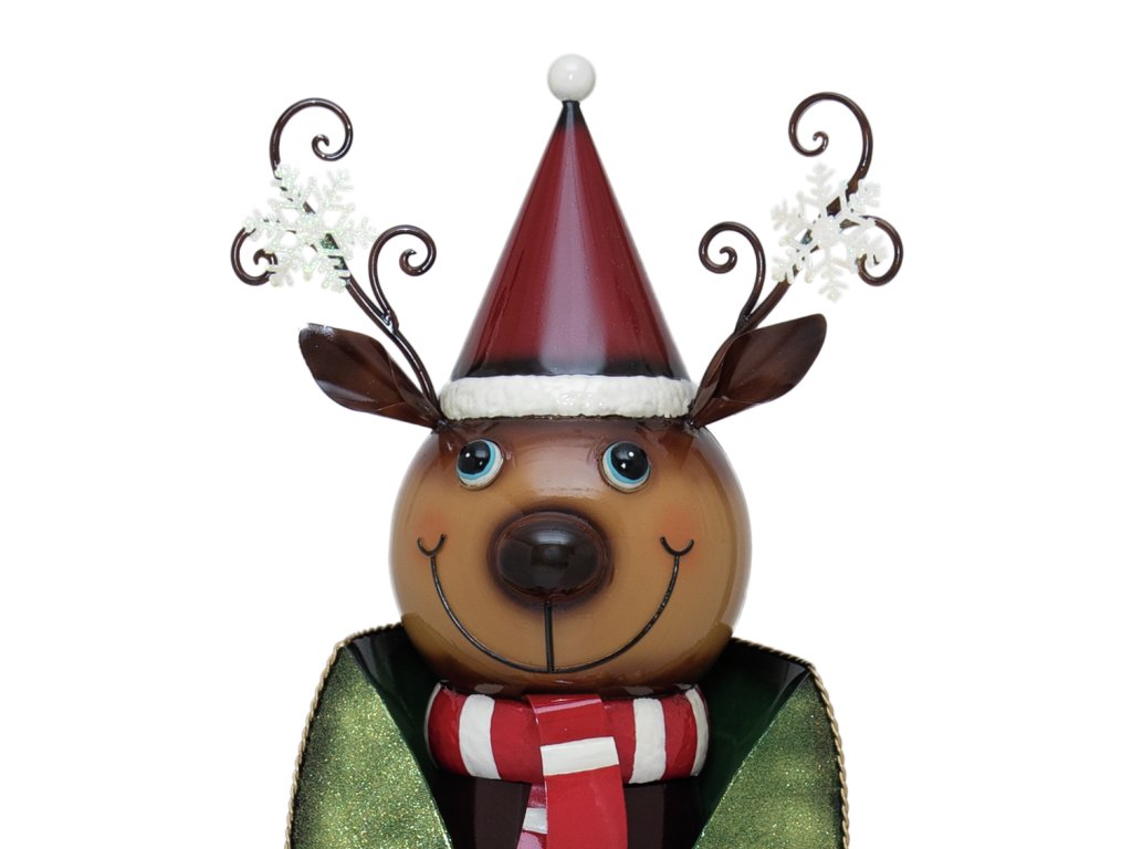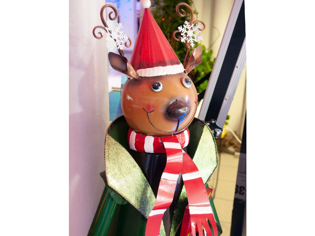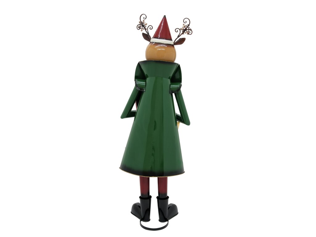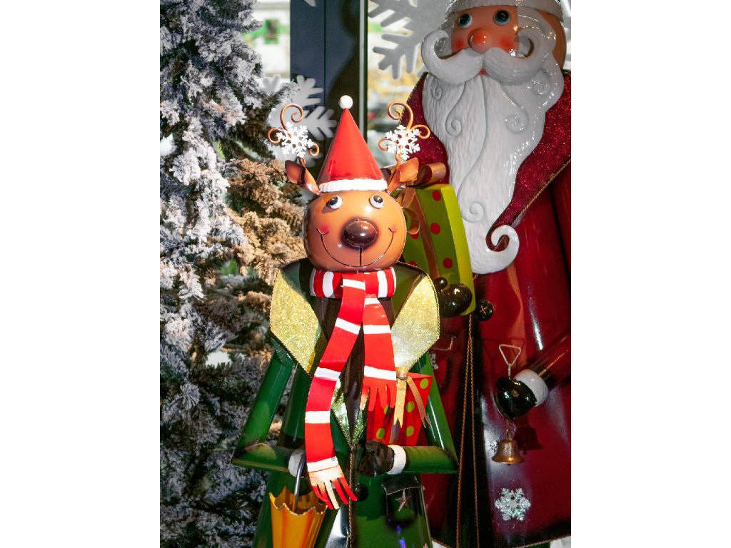 Netradiční vánoční dekorace. Sněžný sob „Rudy“ s vánoční čepicí, teplým kabátem, pletenou šálou a deštníkem je perfektně připraven na chladné období. V rukou drží barevný deštník a pečlivě zabalený vánoční dárek. Při dotyku se trup figuríny jemně rozkmitá. Přátelským úsměvem přivítá vaše návštěvníky nebo podpoří produktovou prezentaci vašeho obchodu v předvánoční sezóně. Kovové figuríny v životní velikosti jsou absolutním poutačem vaší zimní nebo vánoční výzdoby. Díky precizní ruční výrobě je každý kus jedinečný. Kvalitní zpracování je patrné zejména na propracovaných detailech. Figurínu lze sestavit v několika jednoduchých krocích. Stabilní základna s kovovým obloukem pro případné upevnění k pevné podložce.Rozměry: 500 x 400 x 1550 mm