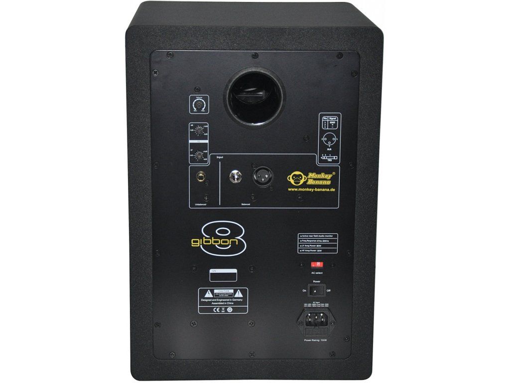 Monkey Banana Gibbon 8 je aktivní monitor pro domácí a profesionální nahrávací studia. Tyto 8” velké digital-bi-amp reproduktory jsou konstruovány pro práci ve středních až velkých monitorovacích místnostech. Díky významnému rozšíření nízkofrekvenčního rozsahu směrem dolů je Gibbon 8 také ideálním DJ-monitorem. Vedle profesionálních studií je tento subwoofer také skvělým doplňkem domácích HiFi sestav ve velkých obývacích pokojích.