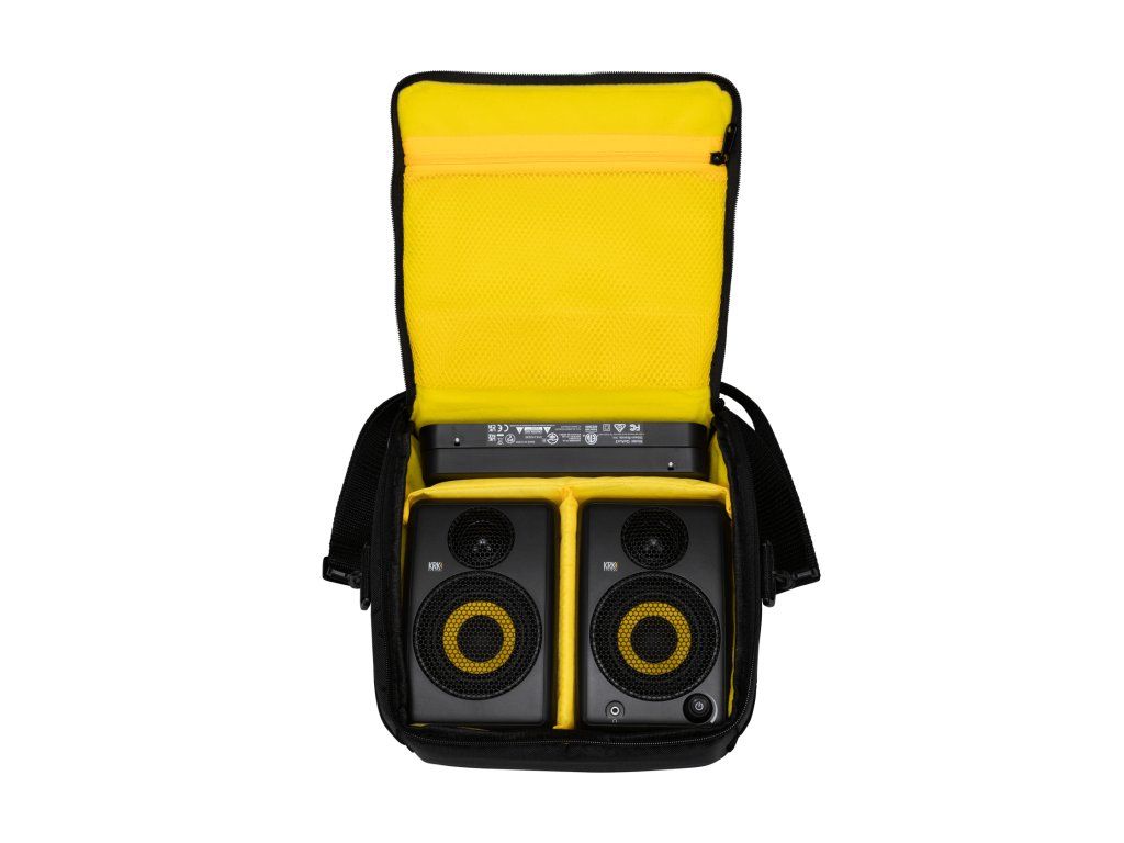 Přenosné nearfield monitory KRK GoAux 3 jsou navrženy tak, aby poskytovaly skvělý zvuk kdekoli na cestách. Jsou to ideální monitory pro cestující hudebníky a inženýry, které poskytují proslulou kvalitu zvuku KRK v mobilní velikosti. Protože jsou monitory GoAux 3 vyrobeny tak, abyste je mohli vzít všude s sebou, dodávají se s praktickou nylonovou brašnou, do které se vejdou oba monitory i přiložené stojany na monitory a všechny další kabely, které si chcete vzít s sebou. Stojany jsou nastavitelné pro optimální polohu a úhel monitoru.