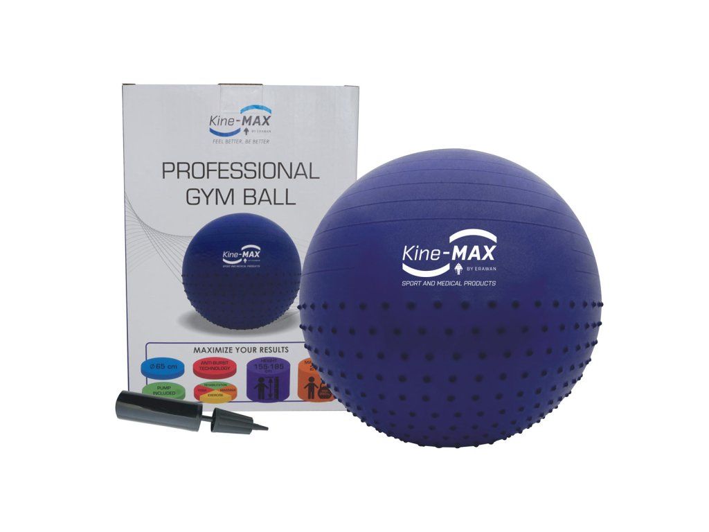 GYMNASTICKÝ MÍČ 65CM - MODRÁ Kine-MAX GYM BALL je profesionálním pomocníkem pro kondiční cvičení, posilovací cvičení, jógu a rehabilitaci. Míč je z jedné poloviny opatřen masážními/reflexními výstupky. Míč je vyroben z vysoce kvalitních a odolných materiálů, využívá technologii ANTI-BURST a je protiskluzový. Maximální zatížení míče je 250Kg. Je vhodný pro všechny uživatele do výšky 185 cm. Míč je dodáván s kvalitní pumpičkou pro snadné nafouknutí. Kine-MAX GYM BALL je ideálním pomocníkem pro udržení zdravé fyzické kondice. Kine-MAX GYM BALL je ideální pomocníkem do fitness, rehabilitace, ale i do každé domácnosti. Různorodost cvičení je obrovská. Ať už jste po úrazu a potřebujete se rychle vrátit do plné fyzické kondice, nebo jste vrcholový sportovec s požadavkem maximálně zvýšit kapacitu svého výkonu. Kine-MAX GYM BALL s „bonusem“ v podobě masážních reflexních výstupků splňuje veškerá kritéria profesionálního gymnastického míče. Profesionální gymnastický míč - modrá: Kvalitní, odolný a protiskluzový materiál Masážní/reflexní výstupky ANTI-BURST technologie Nosnost do 250Kg Pumpička pro snadné nafouknutíDoplňkové parametry