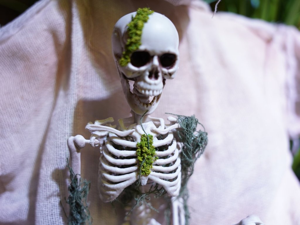 Díky svému hravému vzhledu je malá kostra ideálním doplňkem k vašim halloweenským dekoracím - i když chcete udržet faktor strachu na nízké úrovni. Zdá se, že kostra vylezla přímo ze země, jak jí dávají kousky tmavě zelené nitě a umělý mech je to děsivě krásná aura. Tato lehká figurka se 40 cm se rychle zdobí a vystřihne krásnou postavu kdekoli: ať už jako poutač na vašem stole, na poličce nebo na halloweenském bufetu. Díky pohyblivým končetinám na pažích a nohách může dokonce sedět sám o sobě a dá každé strašidelné párty děsivě krásnou atmosféru během okamžiku. Dejte svým halloweenským dekoracím něco výjimečného s tímto okouzlujícím malým chlapíkem!Hmotnost: 90 g