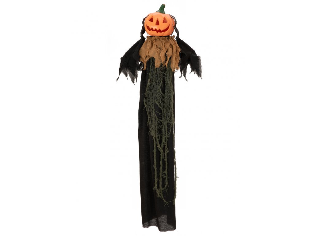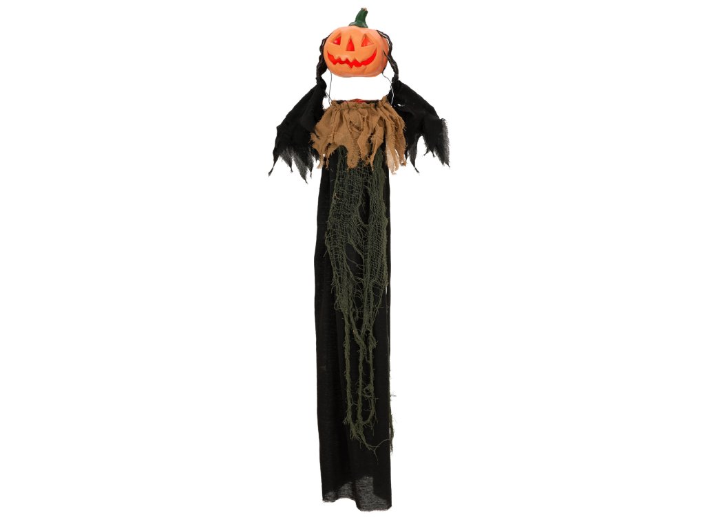 Halloweenská postava s dýňovou hlavou, s animacemi, k zavěšení,115 cm