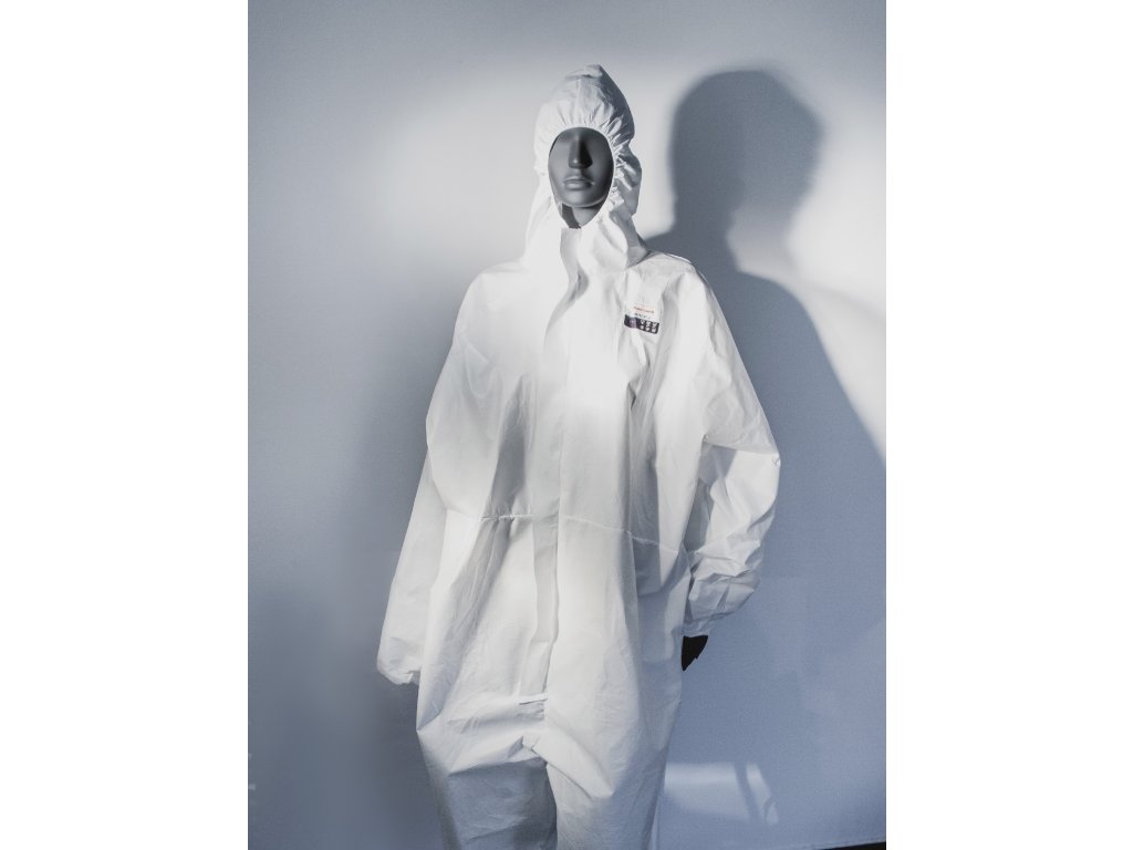 - Nepromokavá a prodyšná membrána vyrobená laminováním bílé mikroporézní PE fólie a bílého antistatického polypropylenového rouna
