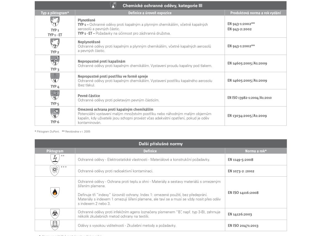 EN 13034: 2005 + A1: 2009, EN 14126: 2003 + AC: 2004, EN ISO 13982-1: 2004 + A1: 2010, EN 1149-5: 2008, EN 1073-2: 2002, EN ISO 13688: 2013