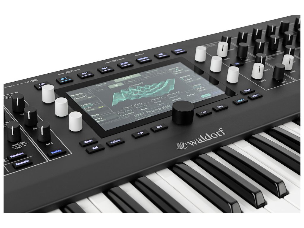 Waldorf IRIDIUM KEYBOARD je původní digitální polyfonní syntezátor s 16 hlasou polyfonií rozšířený o klaviaturu Fatar TP/8S. Disponuje plně stereofonním signálovým routingem, 3 stereo digitálními oscilátory a 5 typy syntézy: Wavetable, Waveform, Particle, Resonator a Kernels.