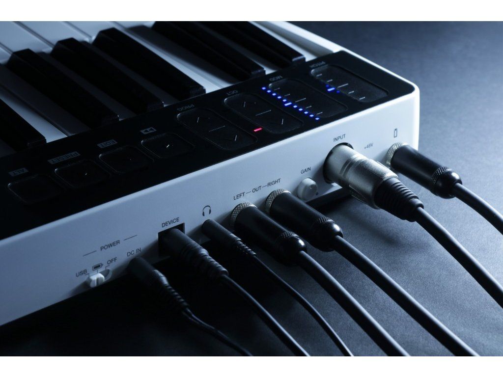 iRig Keys I/O je jedinečný nástroj, který v sobě kombinuje MIDI klaviaturu s full-size klávesami a profesionální audio rozhraní s 24bit/96kHz převodníky. Může se pochlubit symetrickými výstupy, sluchátkovým výstupem a také univerzálním vstupem XLR/jack s fantomovým napájením, do kterého můžete připojit mikrofon, nástroj nebo linku.