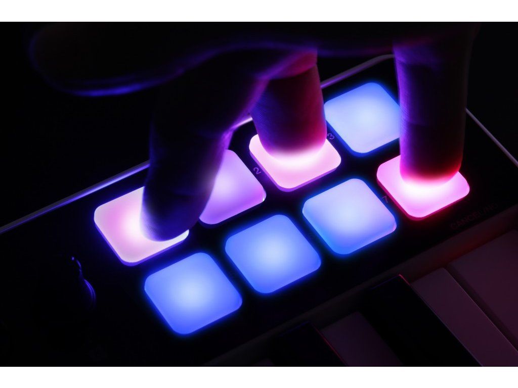 - 8 dotykových RGB LED podsvícených padů pro tvorbu beatů