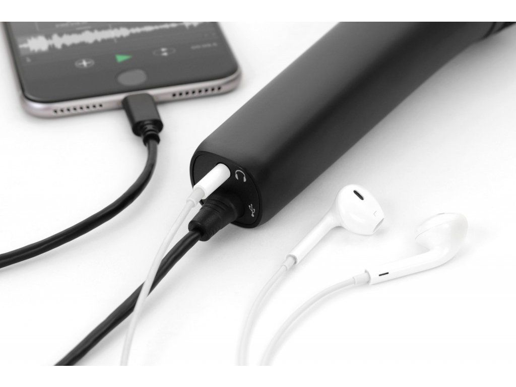 iRig Mic HD 2 je vybaven výstupem pro sluchátka s ovládáním hlasitosti, což uživatelům umožňuje přímo poslouchat zvuk nebo posílat signál do PA nebo mixu.