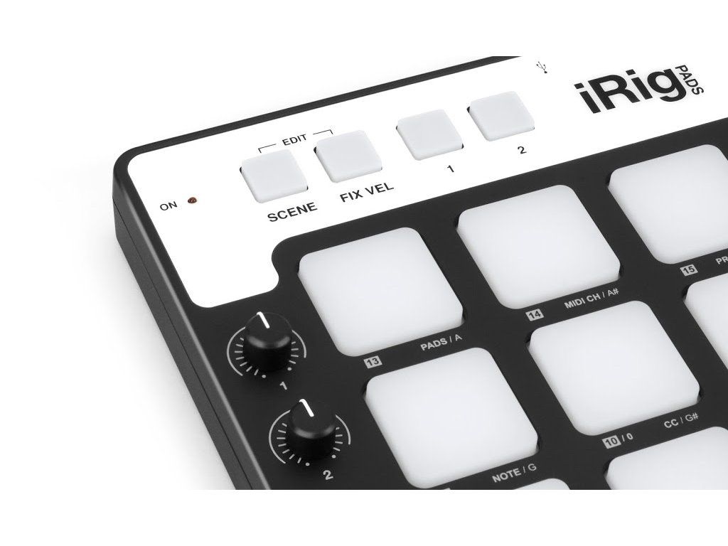 Ale iRig Pads dokáže více než průměrný mobilní MIDI kontrolér s pady. Jeho plná sada ovládacích prvků - dva knoflíky, dvě tlačítka, jeden jezdec a „pushbutton“ datové kolečko - poskytuje univerzálnost, která vám umožní mít kontrolu v každé situaci. Všechny ovládací prvky jsou MIDI přiřaditelné a přizpůsobitelné - až 16 různých MIDI map nebo "scén" může být uloženo a následně pak okamžitě vyvoláno pro plnou kontrolu nad aplikací a softwarem. Dodává se s 6-ti předprogramovanými standardními scénami, které umožňují pracovat s oblíbenými aplikacemi a softwarem ihned po vybalení z krabice.
