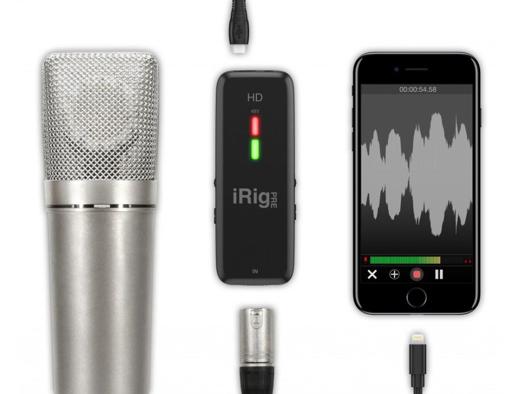 - Nabízí zapojit váš oblíbený studiový kondenzátorový nebo jiný mikrofon k vašemu zařízení iOS pro nahrávání v HD