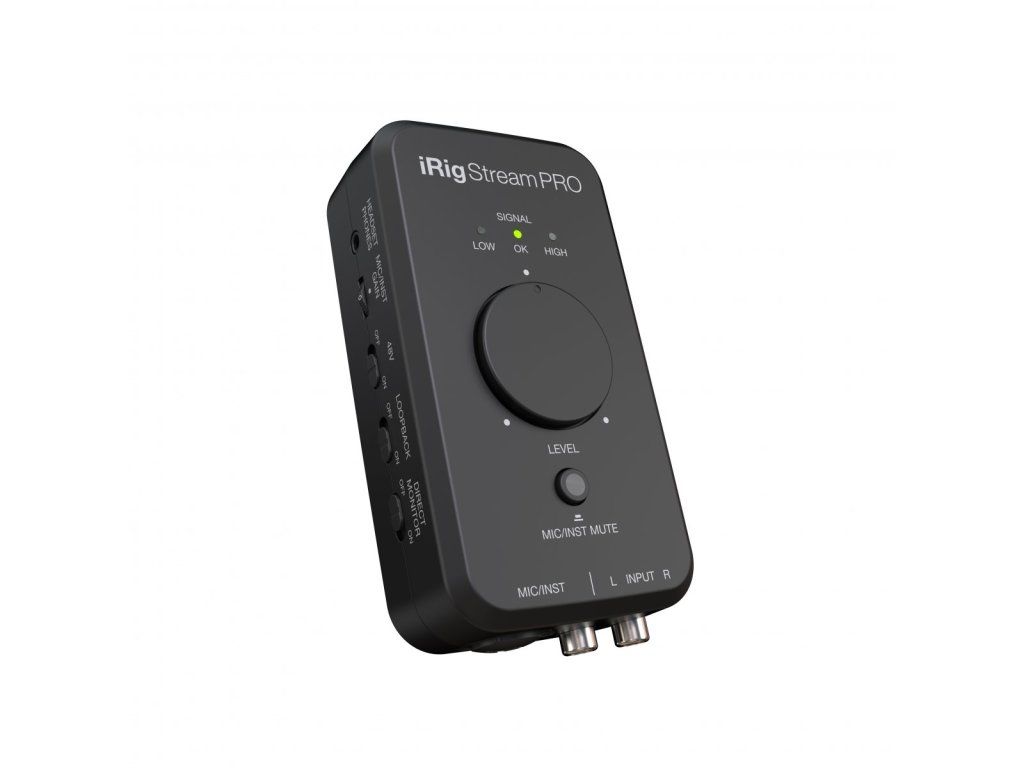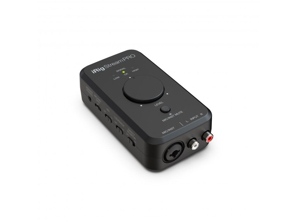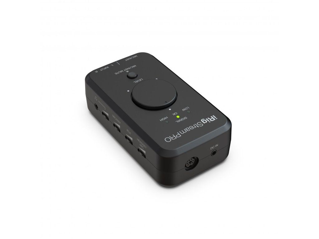 iRig Stream Pro je mobilní 24bit/ 96 kHz audio rozhraní pro iOs/Android a Mac/PC, primárně určené pro pokročilý přenos různých zvukových zdrojů do oblíbených streamovacích aplikací. Nabízí XLR mikrofonní vstup s předzesilovačem a phantomovým napájením, stereo RCA vstup, TRRS vstup, pokročilé funkce, pohodlné ovládání a bezproblémovou přenositelnost.